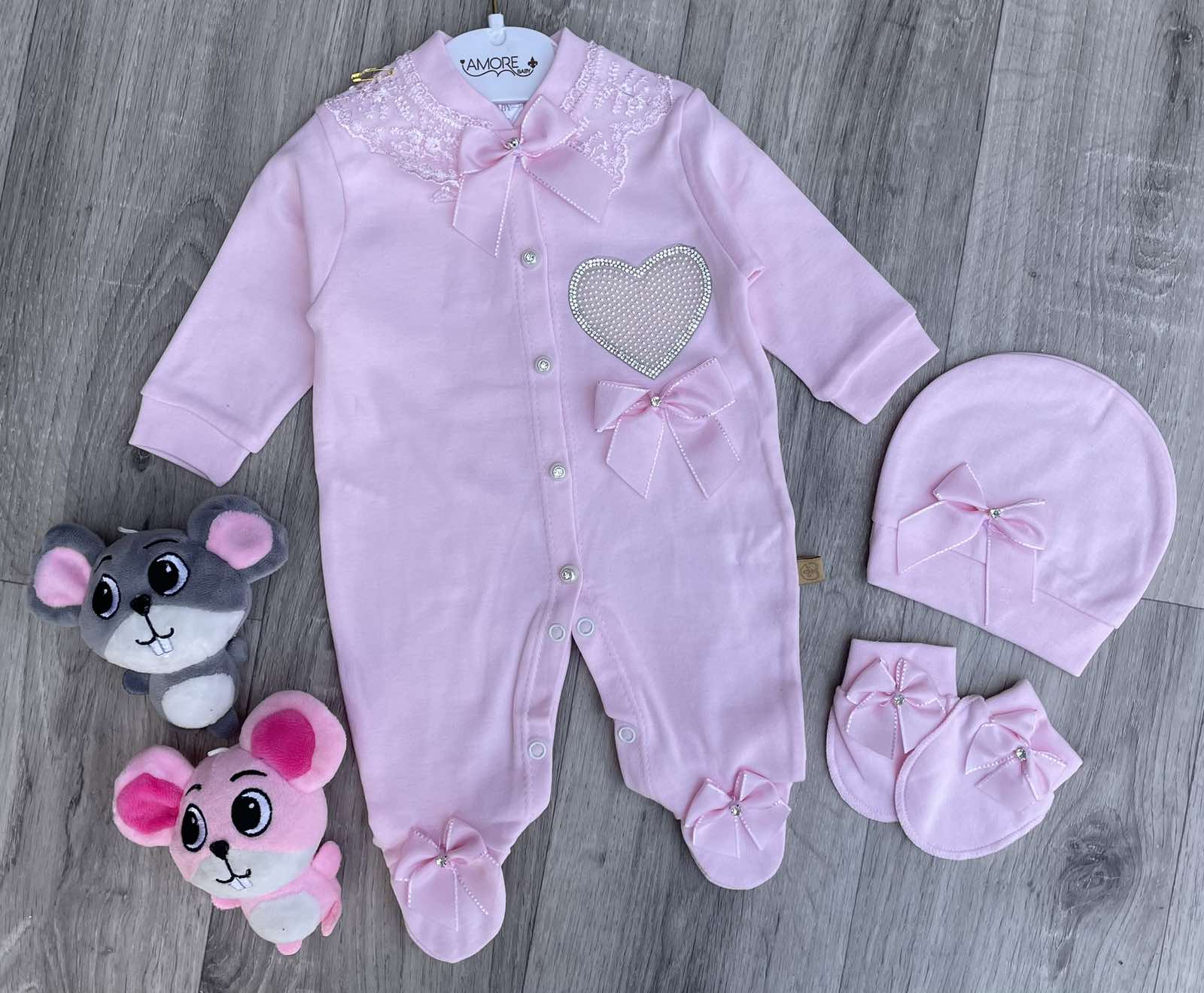 Человечек Amore "Сердце" розовый,девочка 0-3-6 месяцев оптом уп. - 3 шт.