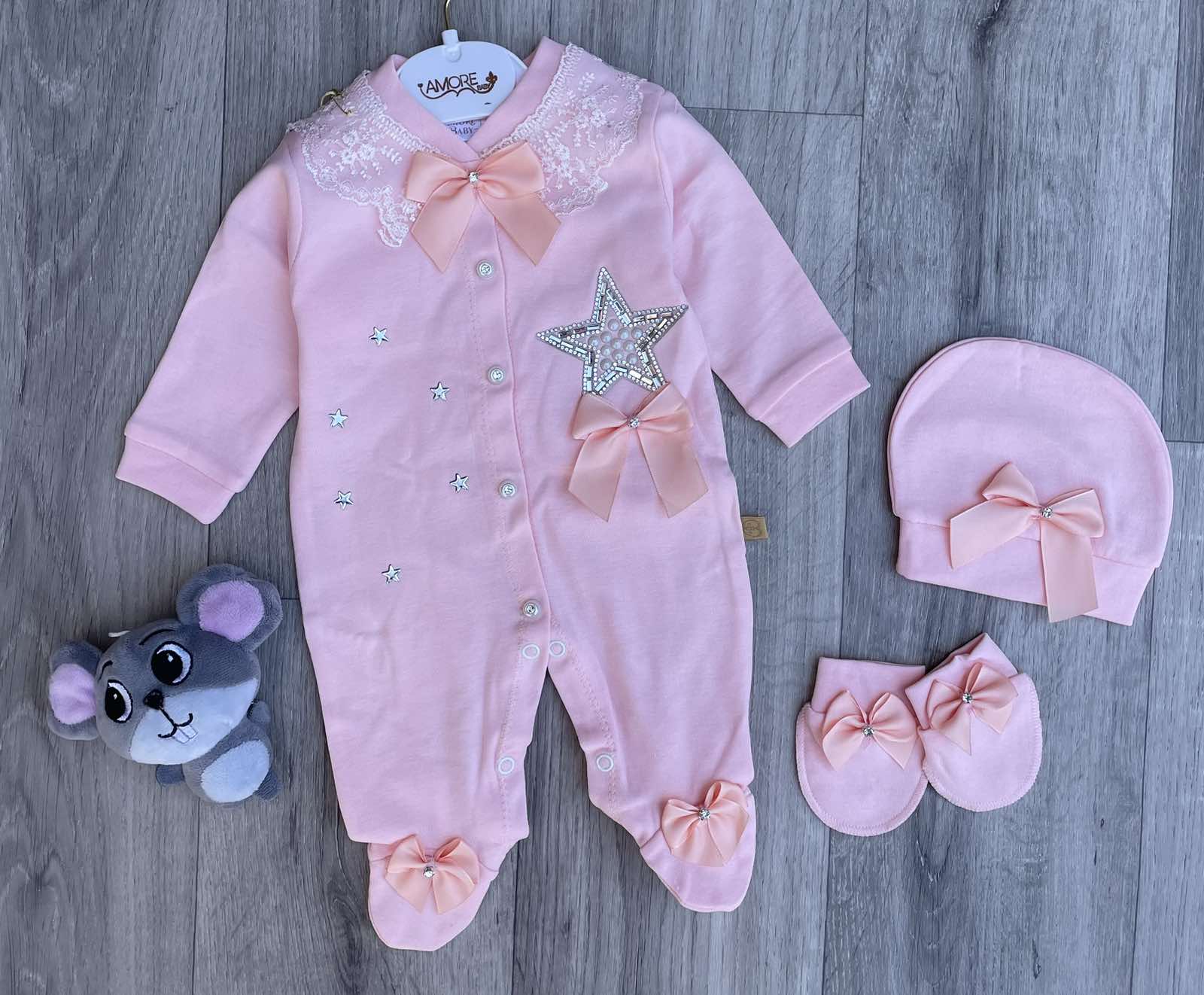 Человечек Amore "Звёздочка" персиковый, девочка 0-3-6 месяцев оптом уп. - 3 шт.