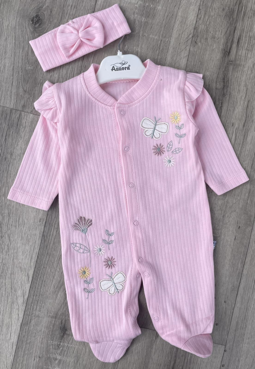 Человечек Annora «Бабочки» розовый, девочка 0-3-6 месяцев оптом уп. - 3 шт.