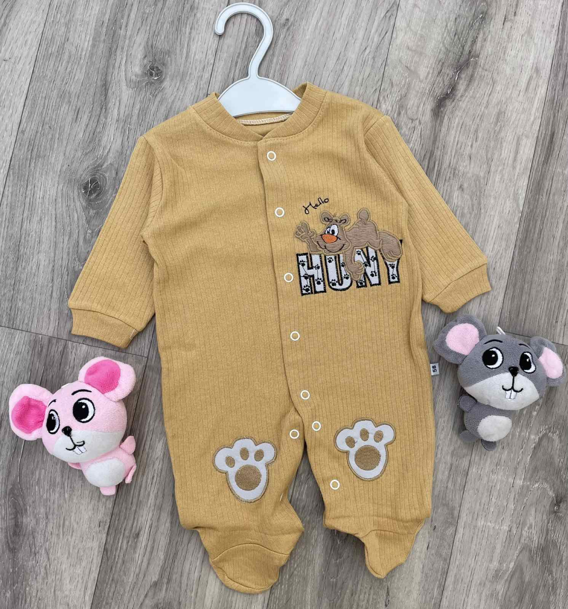 Человечек Kids Wear "Huny" горчичный, мальчик 0-3-6 месяцев оптом уп. - 3 шт.