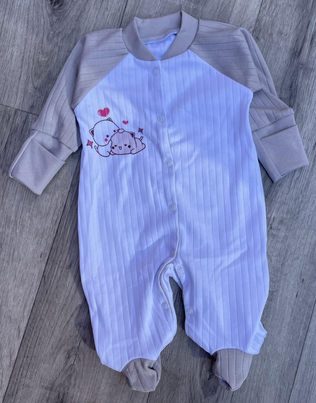 Человечек «Котики» молочный, унисекс 0-3-6-9 месяцев оптом уп. - 4 шт.