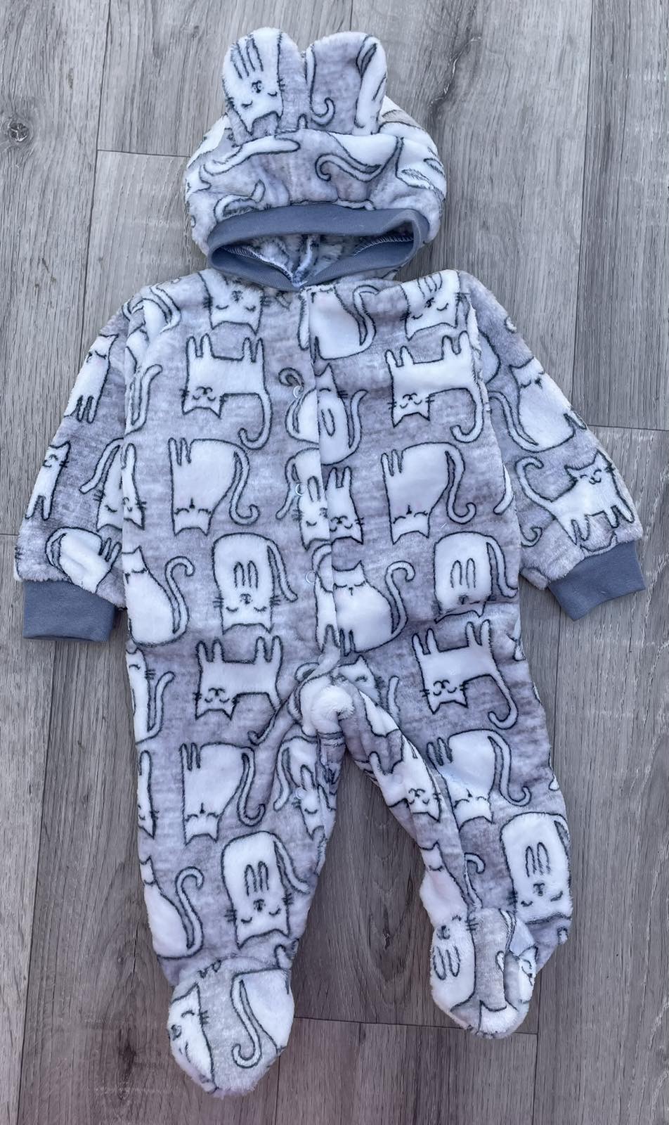 Чоловічок «Котики» сірий, унісекс 6-9-12 місяців оптом уп. - 3 шт.