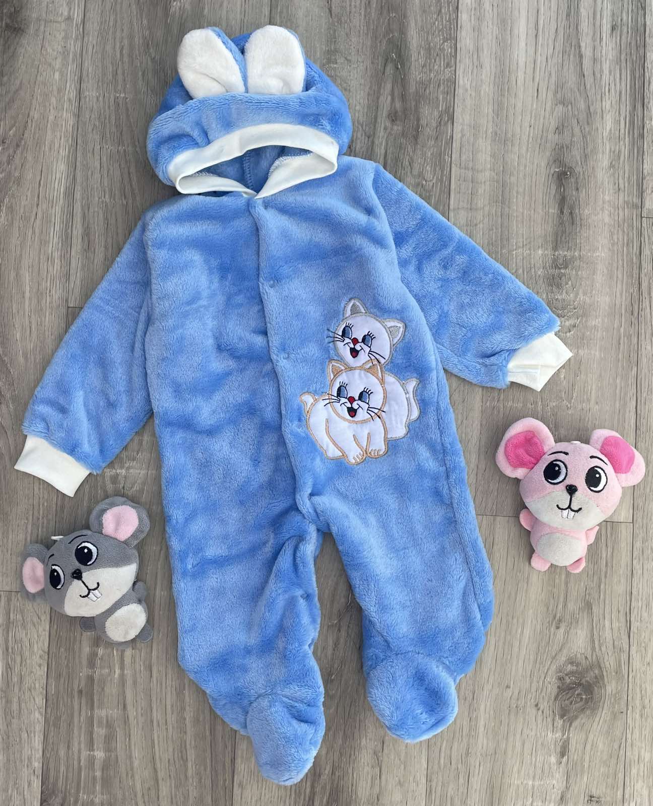 Человечек "Котята" голубой, мальчик 6-9-12 месяцев оптом уп. - 3 шт.