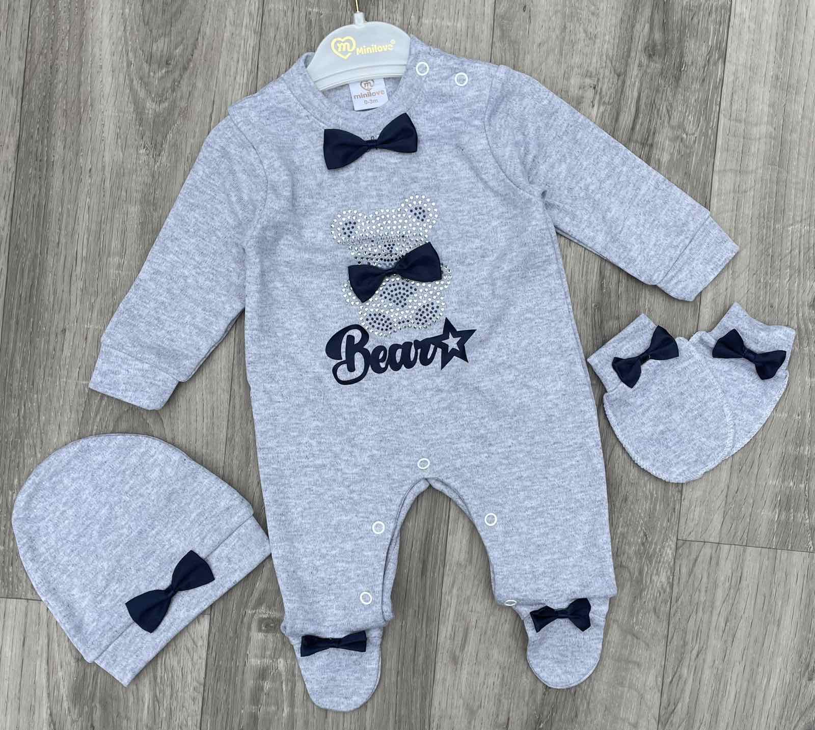 Человечек Minilove «Bear» серый, мальчик 0-3-6 месяцев оптом уп. - 3 шт.