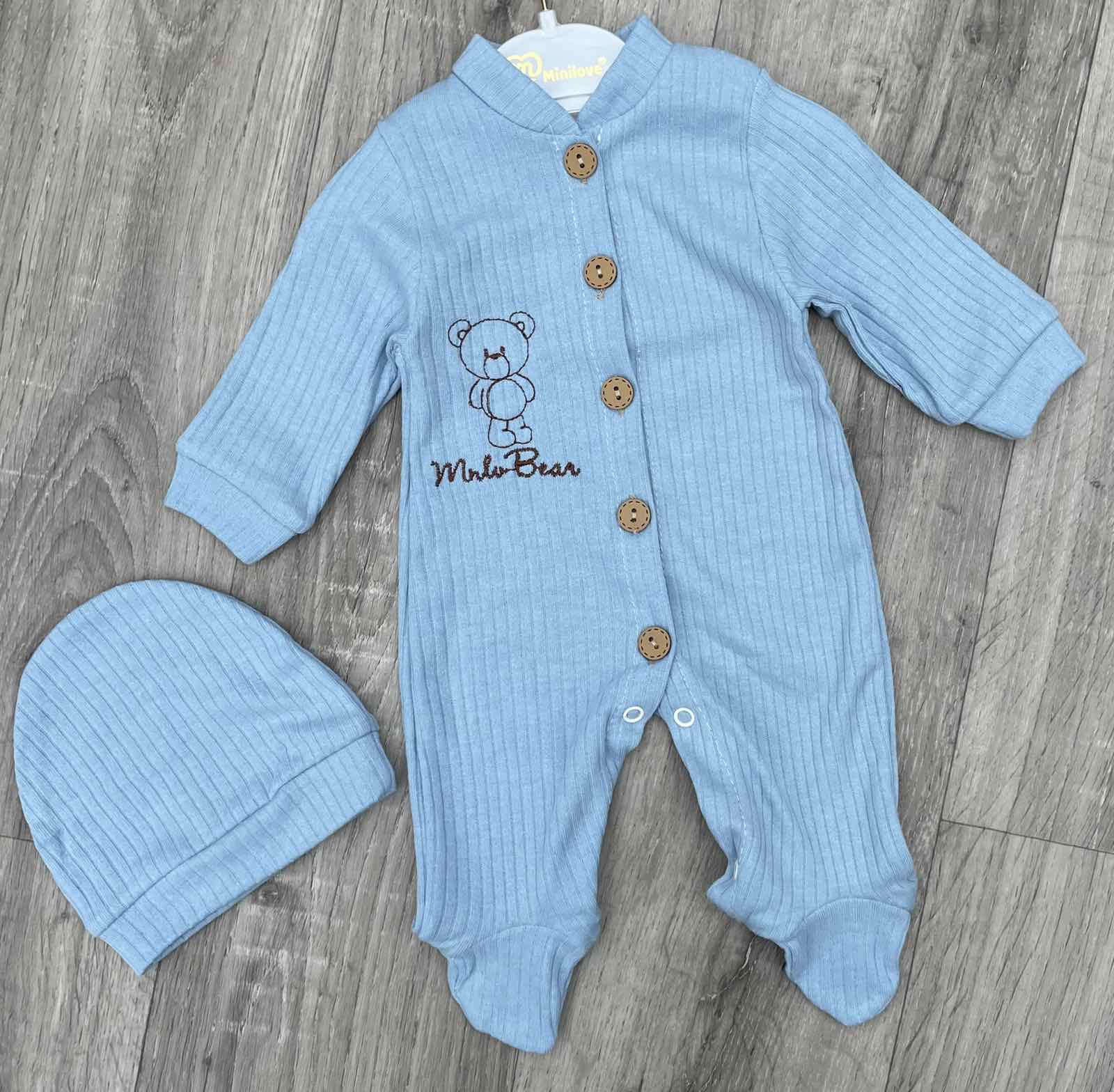 Человечек Minilove «Мишка» голубой, мальчик 0-3-6 месяцев оптом уп. - 3 шт.