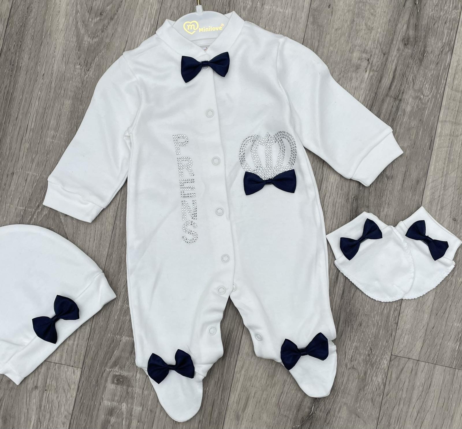 Чоловічок Minilove «Prens» біло-синій, хлопчик 0-3-6 місяців оптом уп. - 3 шт.