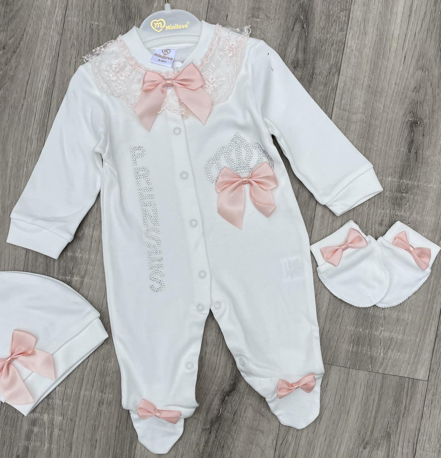 Человечек Minilove «Prenses» бело-персиковый, девочка 0-3-6 месяцев оптом уп. - 3 шт.