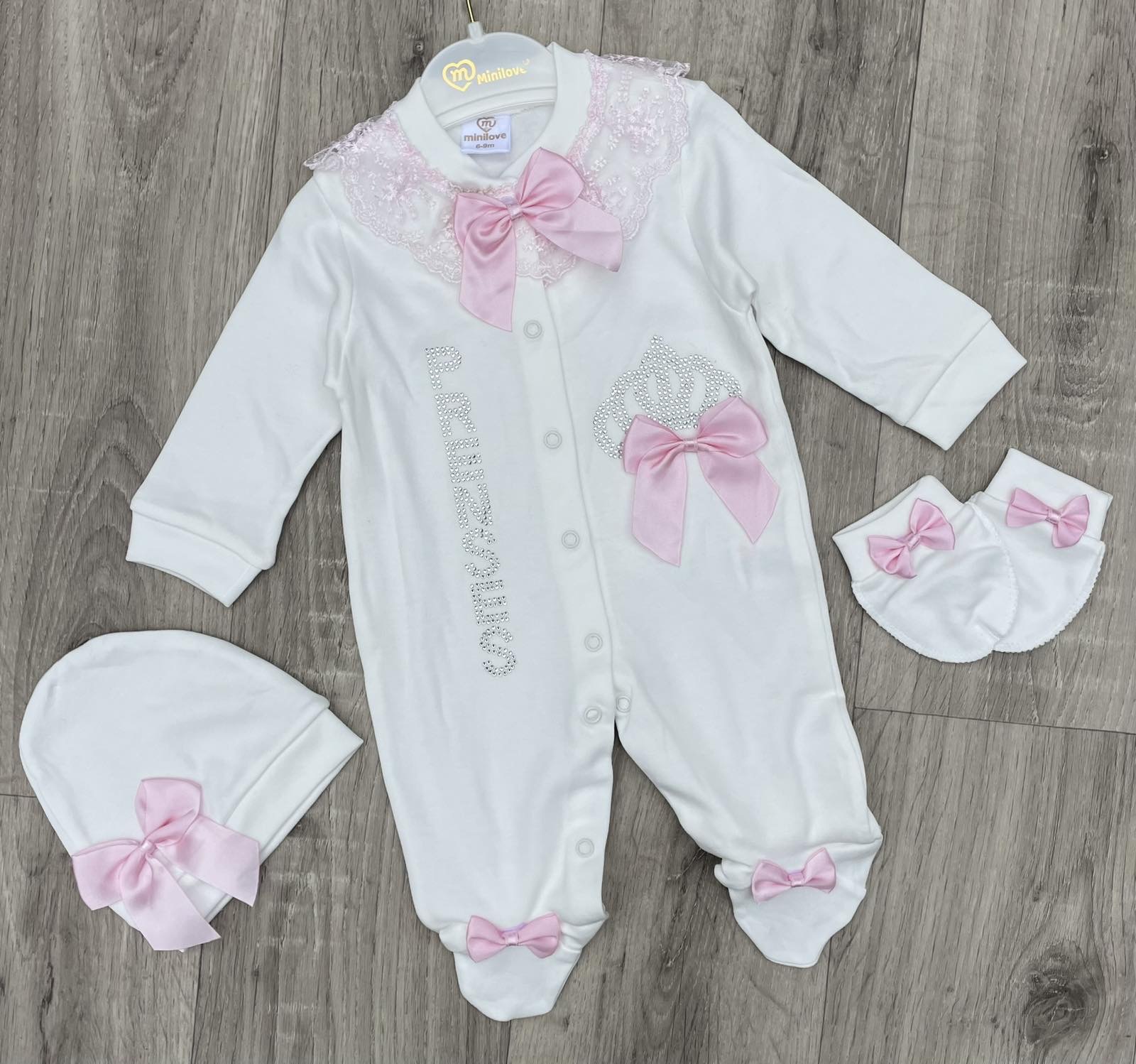 Человечек Minilove «Prenses» бело-розовый, девочка 0-3-6 месяцев оптом уп. - 3 шт.