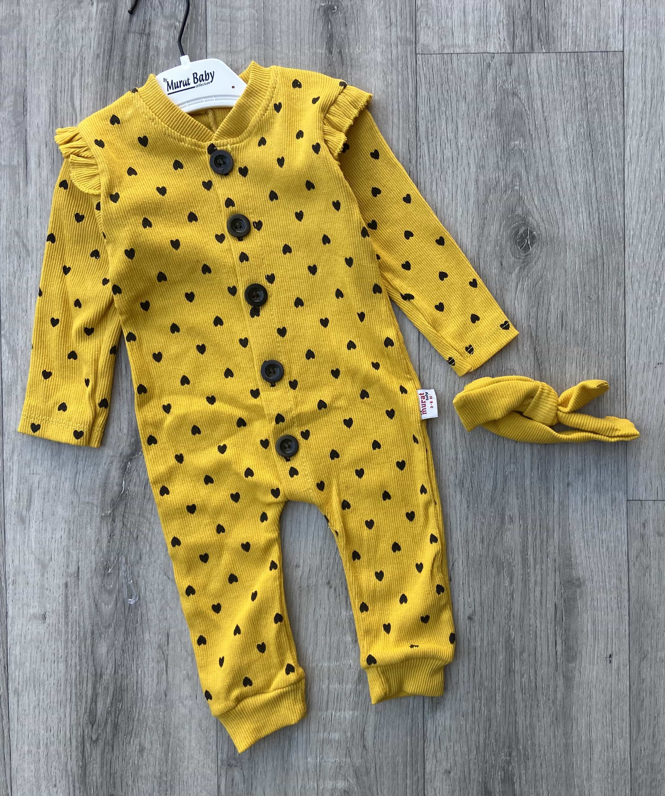 Чоловічок Murat Baby "Сердечки" жовтий, дівчинка 3-6-9-12 місяців оптом уп. - 4 шт.