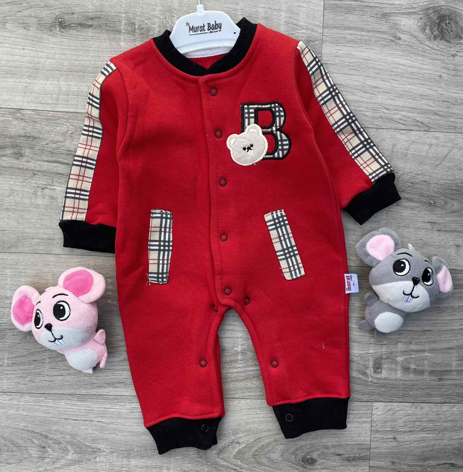 Человечек Murat "Bear" красный, мальчик 3-6-9-12 месяцев оптом уп. - 4 шт.