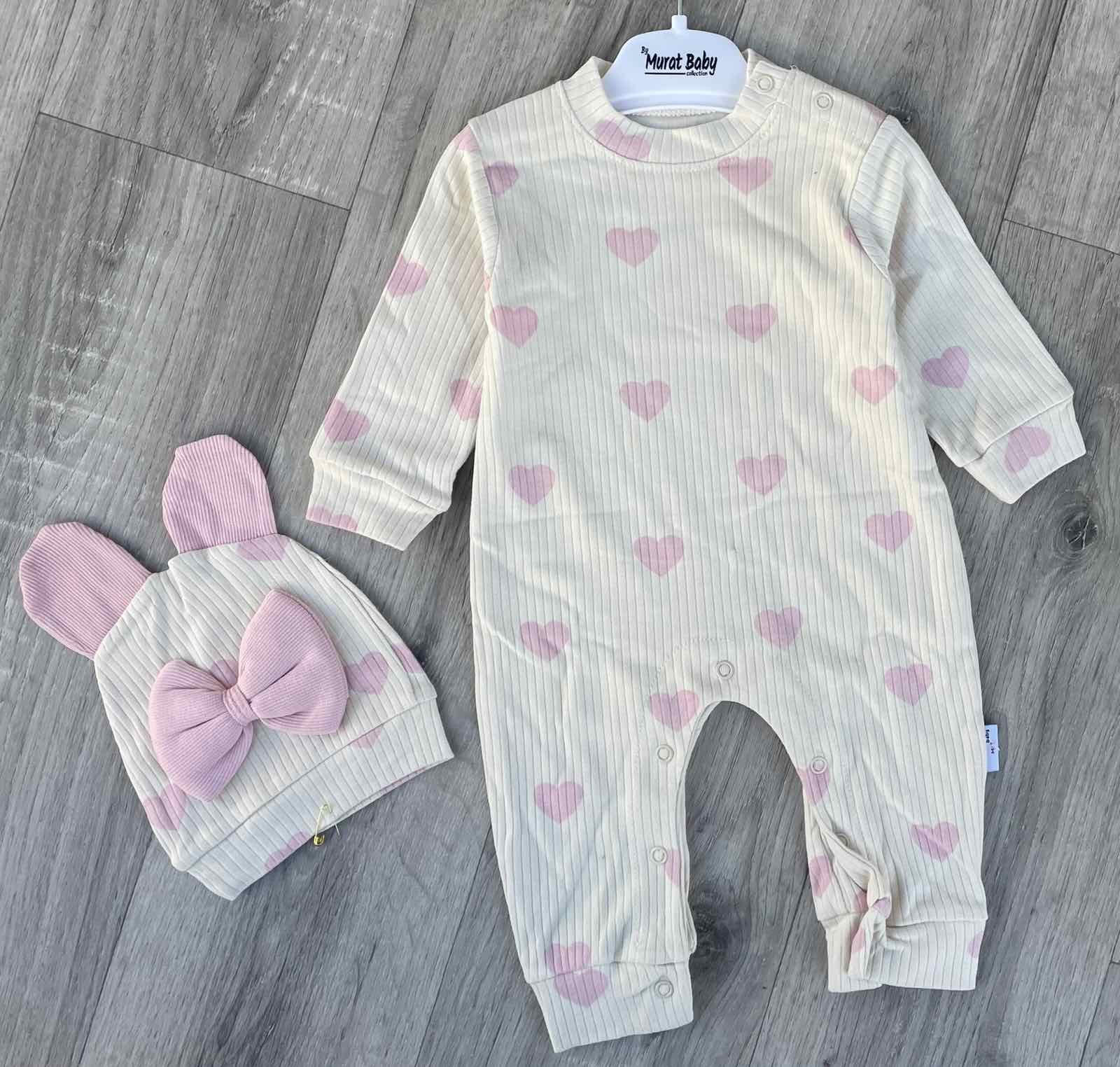 Чоловічок Murat «Сердечки» рожевий, дівчинка 3-6-9-12 місяців оптом уп. - 4 шт.