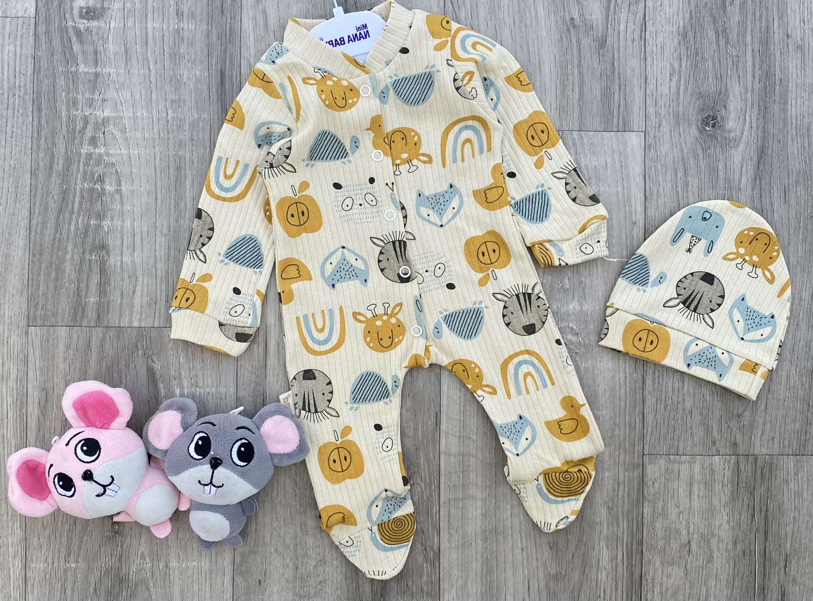 Человечек Nana Baby "Животные" бежевый , унисекс 0-3-6 месяцев оптом уп. - 3 шт.