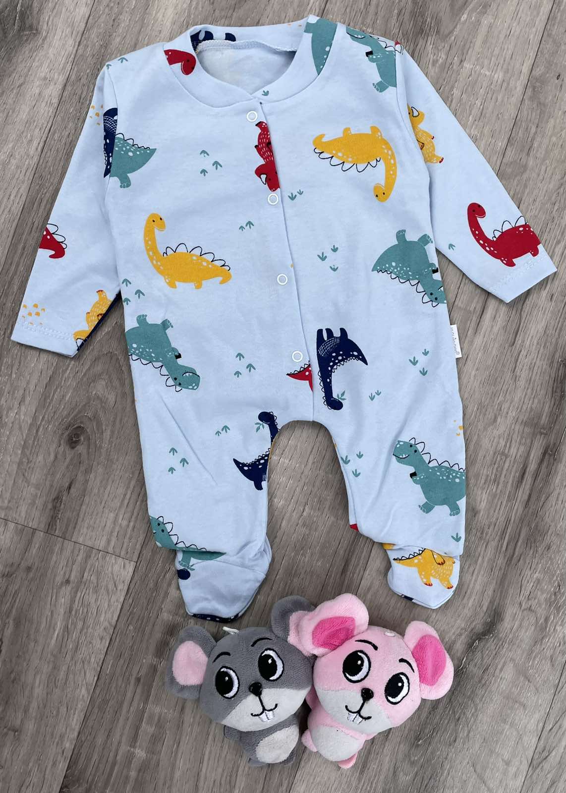 Человечек Nayinom baby "Dino" голубой, мальчик 0-3-6 месяцев оптом уп. - 3 шт.