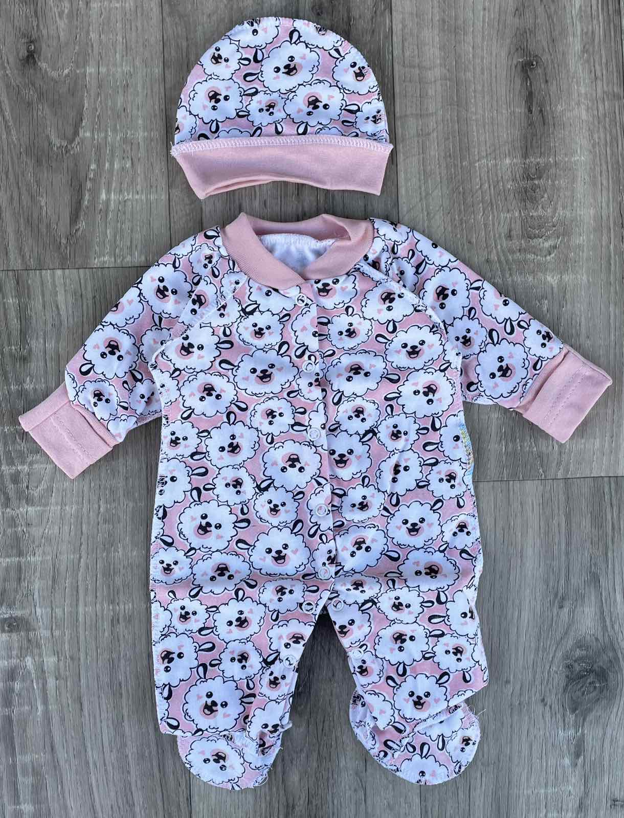 Человечек «Овечки» розовый, девочка 0-3-6 месяцев оптом уп. - 3 шт.
