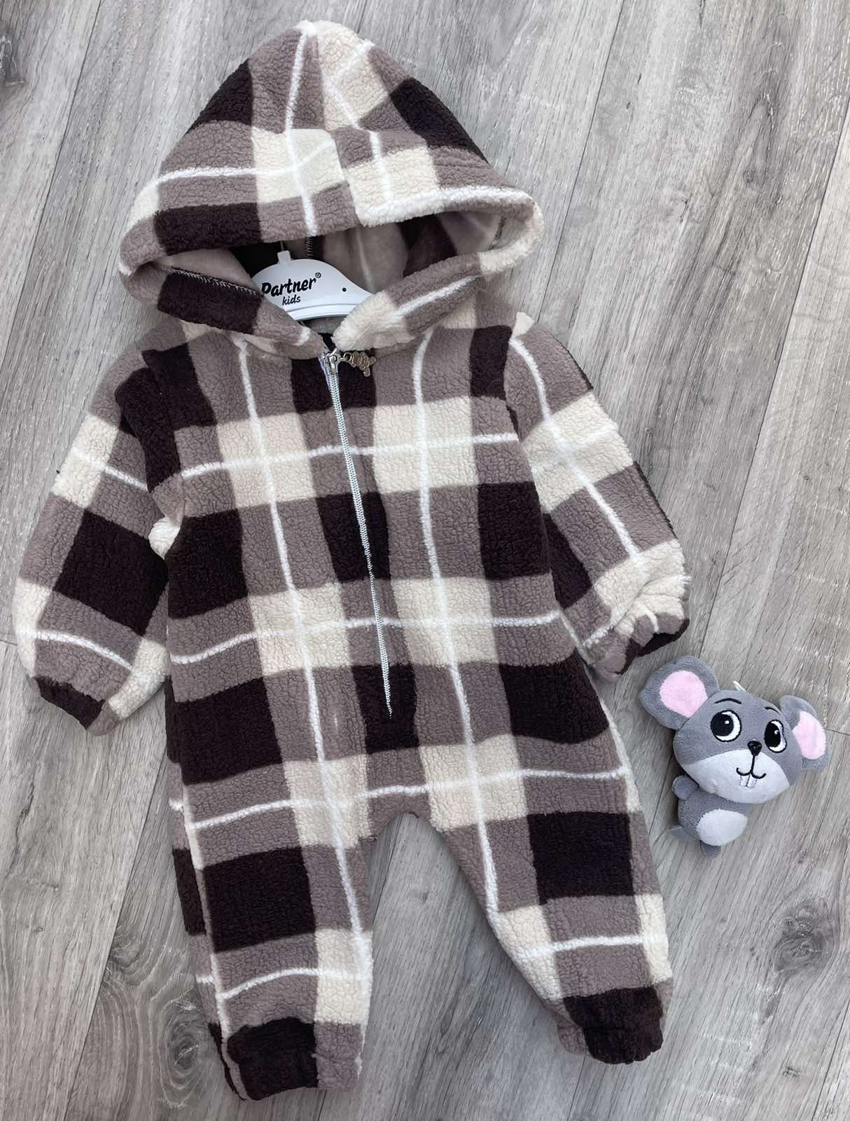 Человечек Partner "Клеточка" коричневый, унисекс 3-6-9-12 месяцев оптом уп. - 4 шт.