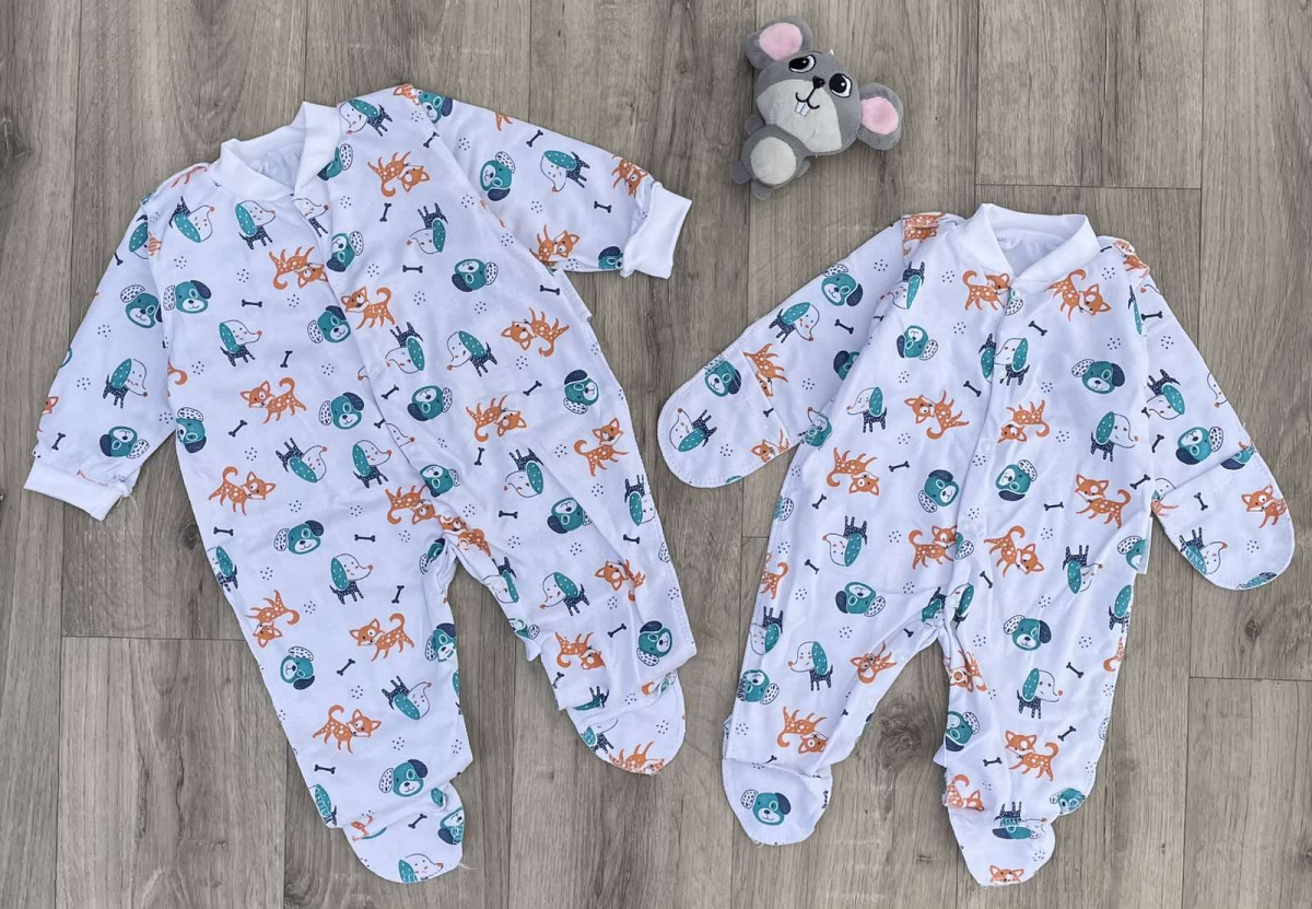 Чоловічок "Песики" білий, унісекс 0-3-6 місяців оптом уп. - 3 шт.