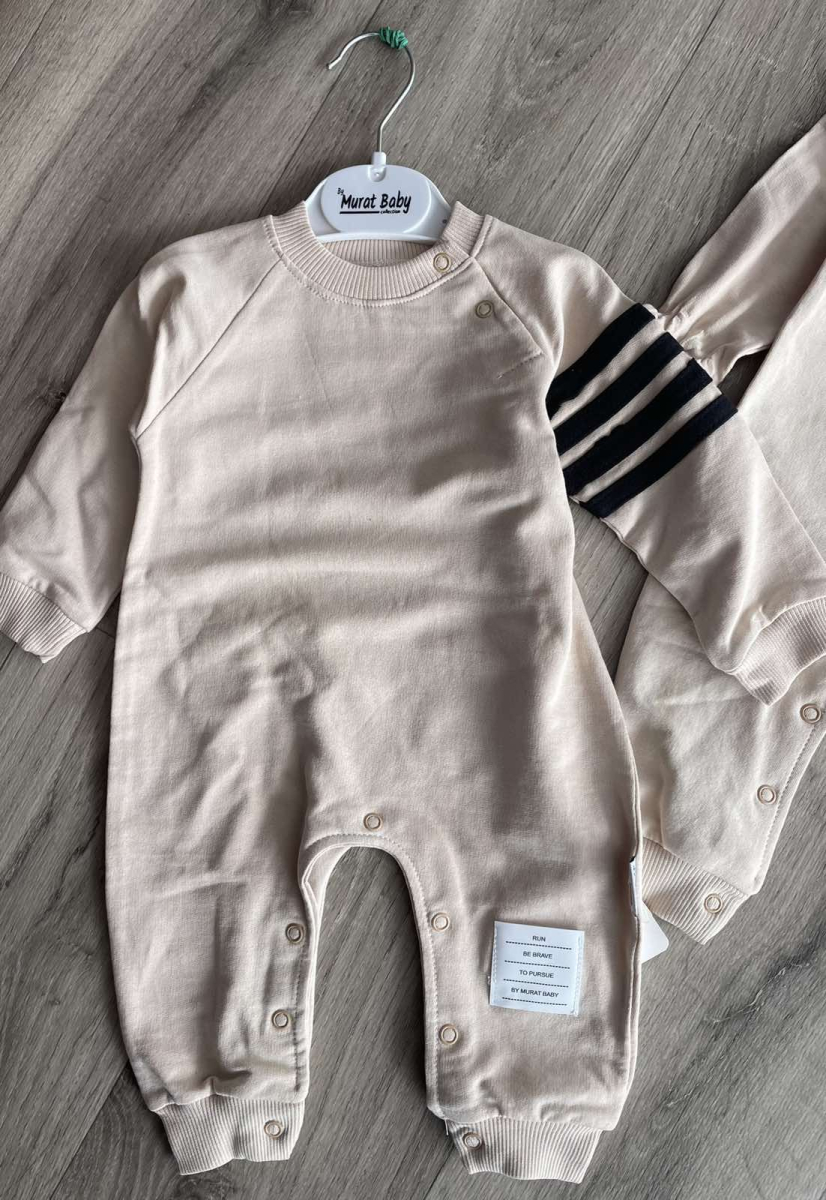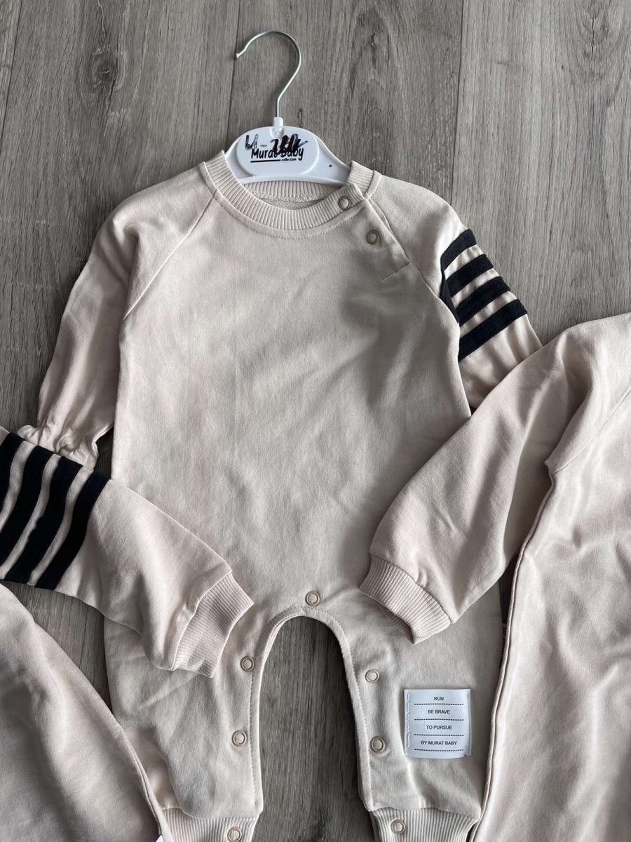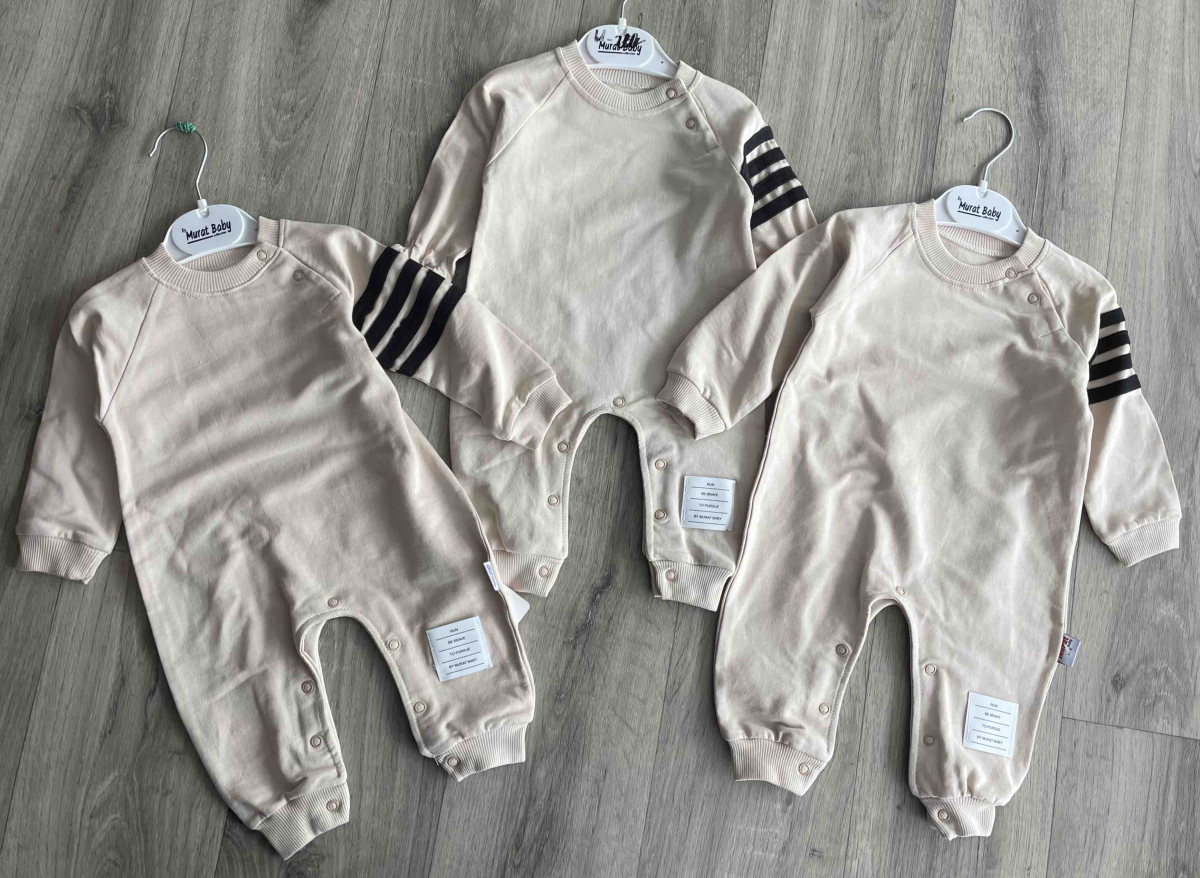 Человечек «Полосочки» бежевый, мальчик 3-6-9 месяцев оптом уп. - 3 шт.