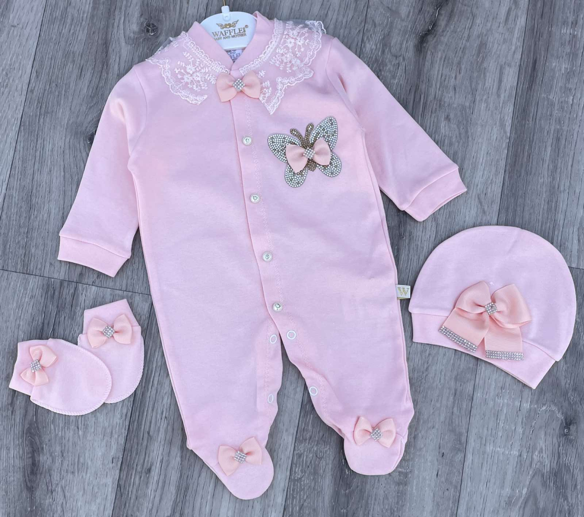 Человечек Waffle "Бабочка" персиковый , девочка 0-3-6 месяцев оптом уп. - 3 шт.