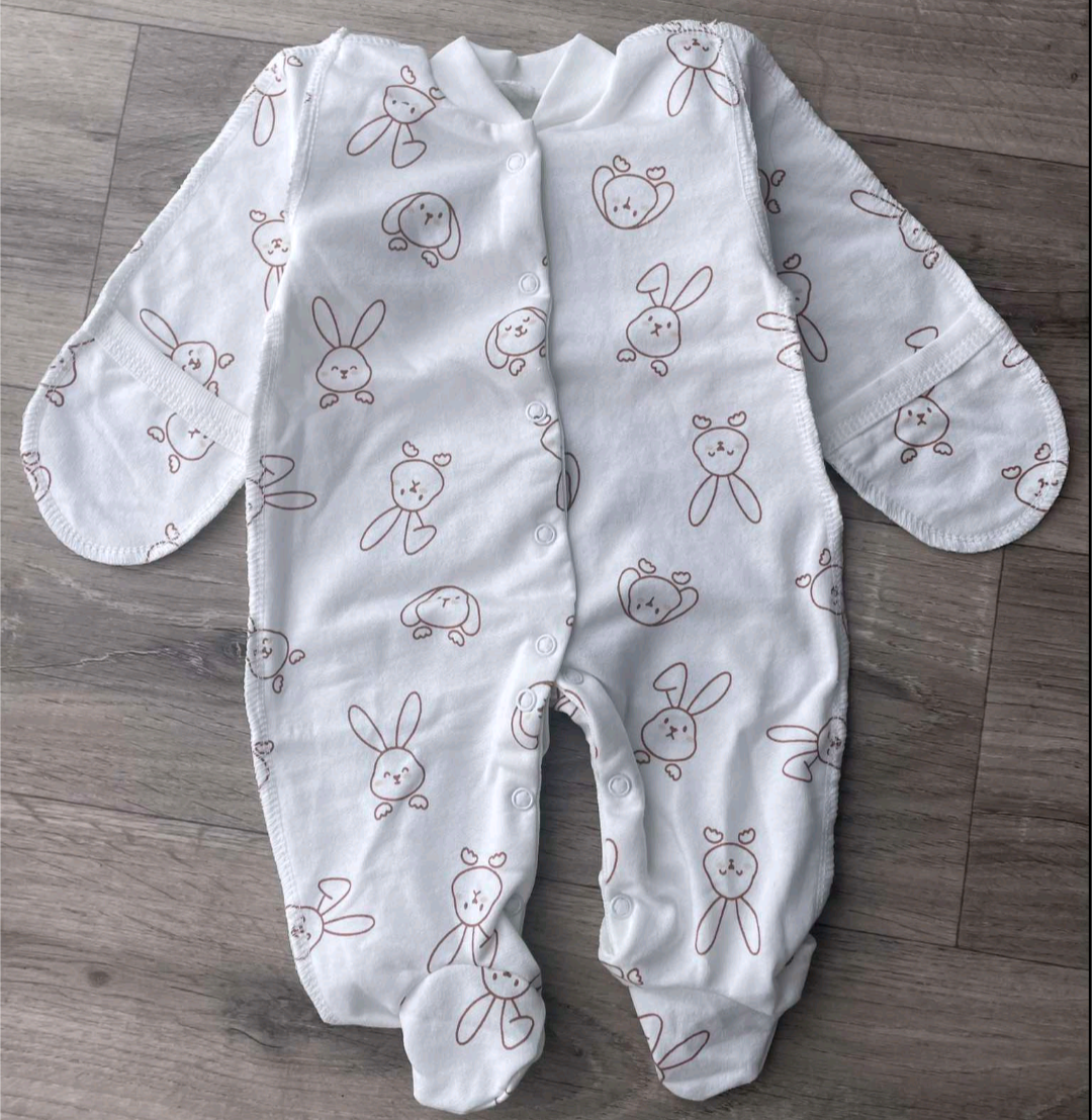 Человечек "Зайчики" молочный, унисекс 0-3-6-9 месяцев оптом уп. - 4 шт.
