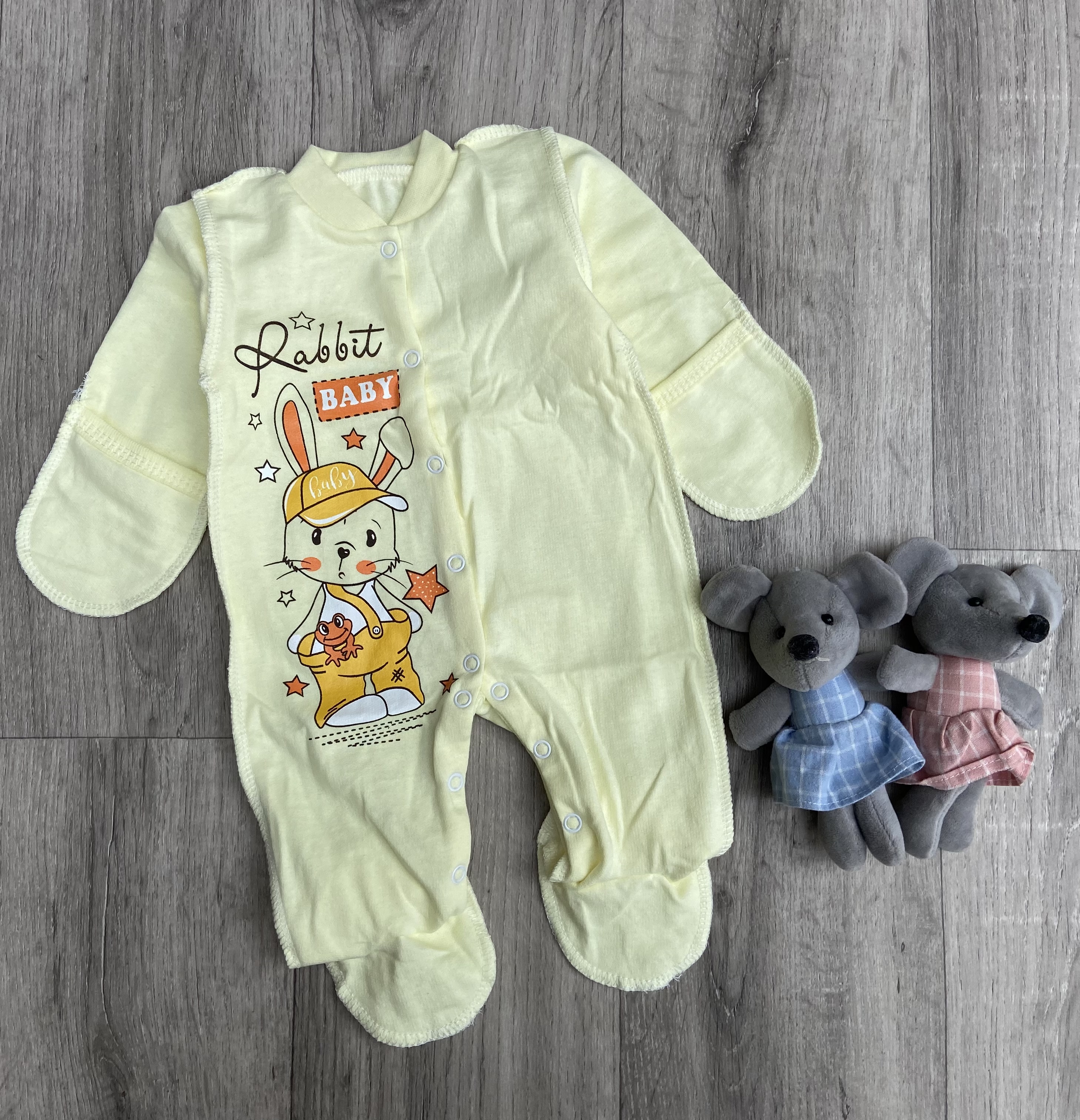 Человечек "Зайка", жёлтый унисекс 0-3-6 месяцев оптом уп. - 3 шт.