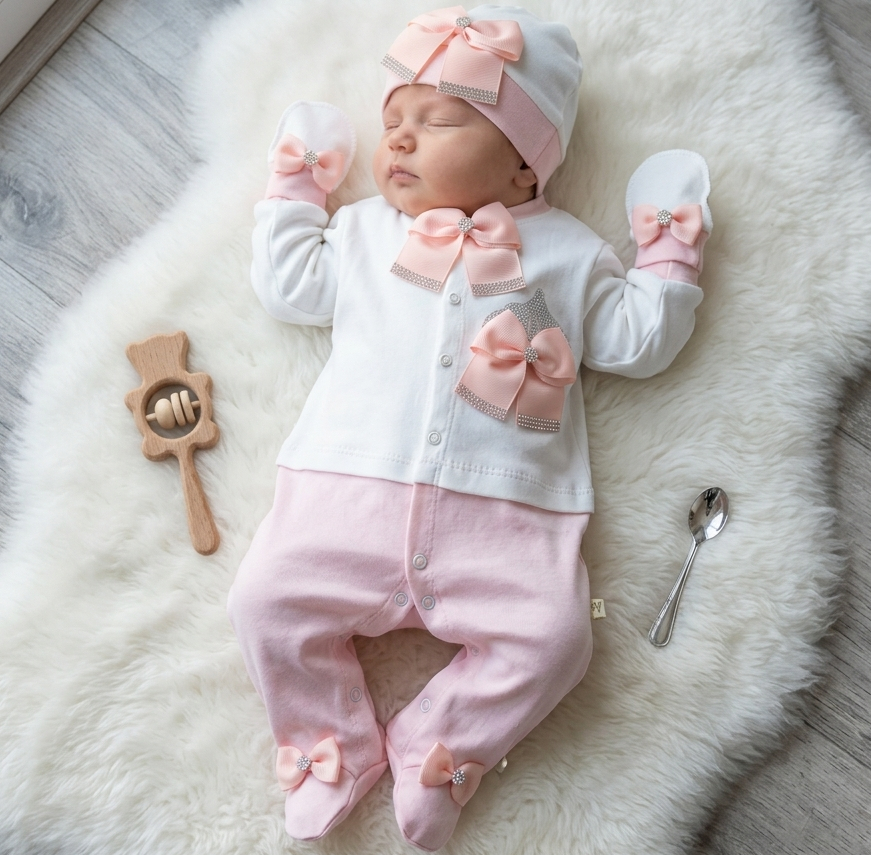 Чоловічок Waffle "корона бант" білий+персик, дівчинка 0-3-6 місяців оптом уп. - 3 шт.