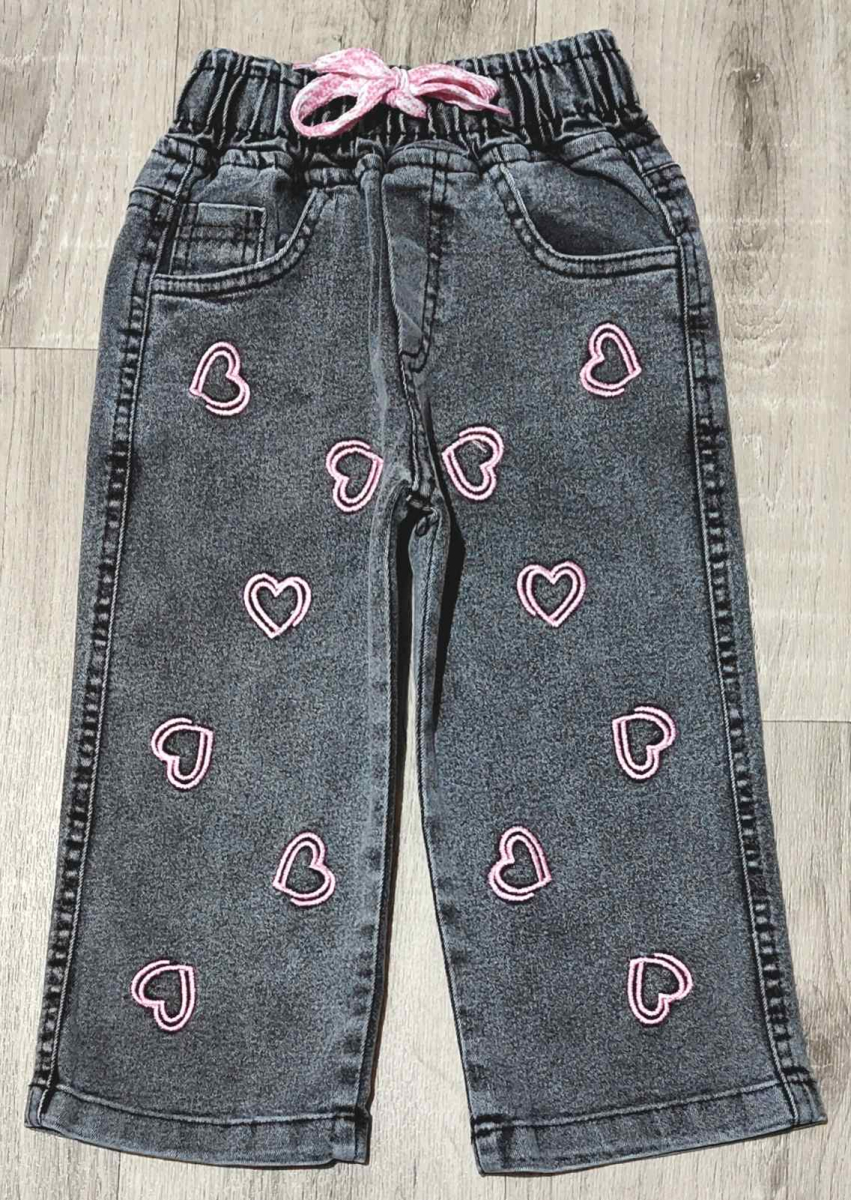 Джинсы Hiwro "Сердечка" серый, девочка 5-6-7-8 лет