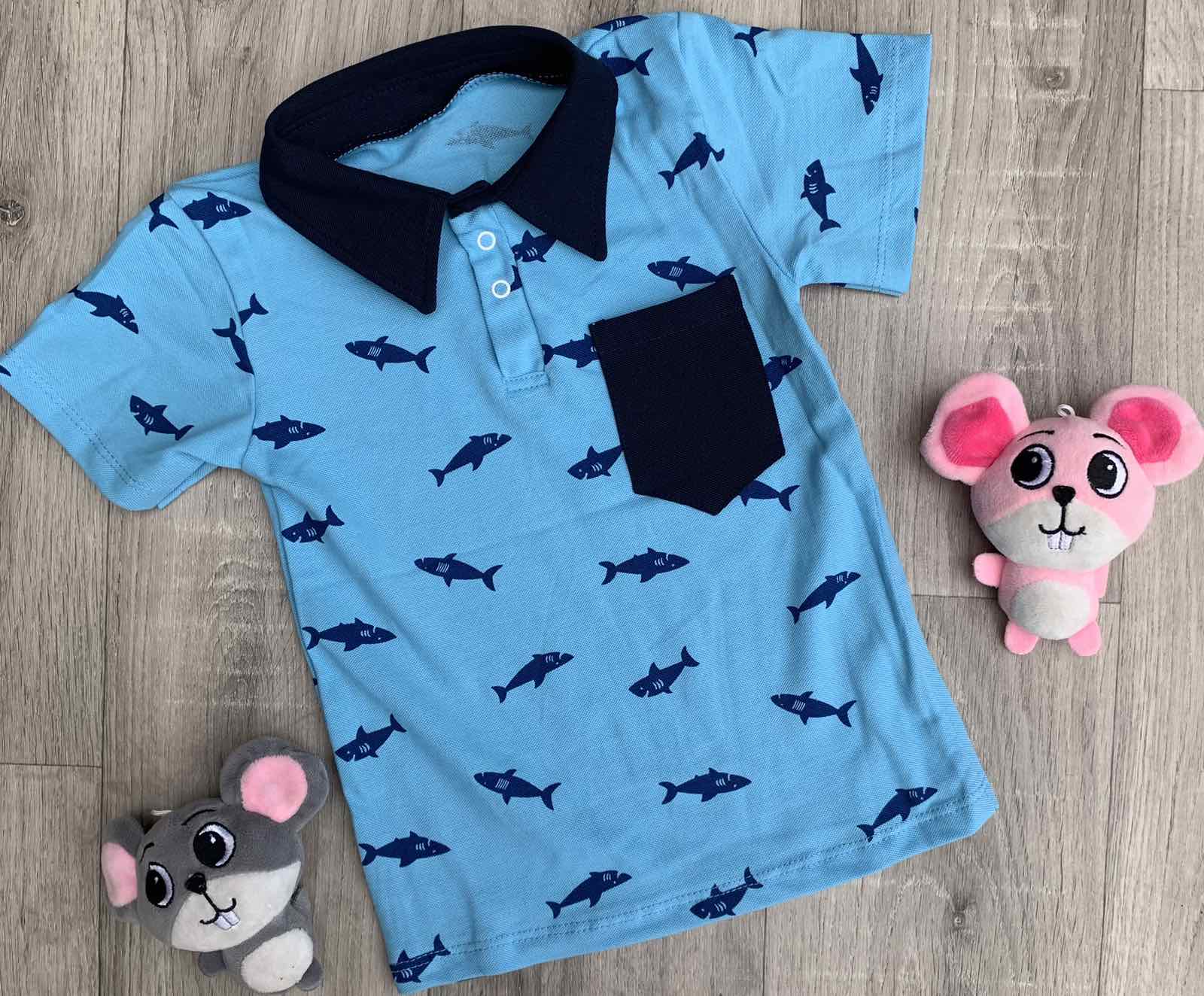 Футболка "Акула" голубая, мальчик 4-5-6-7 лет оптом уп. - 4 шт.
