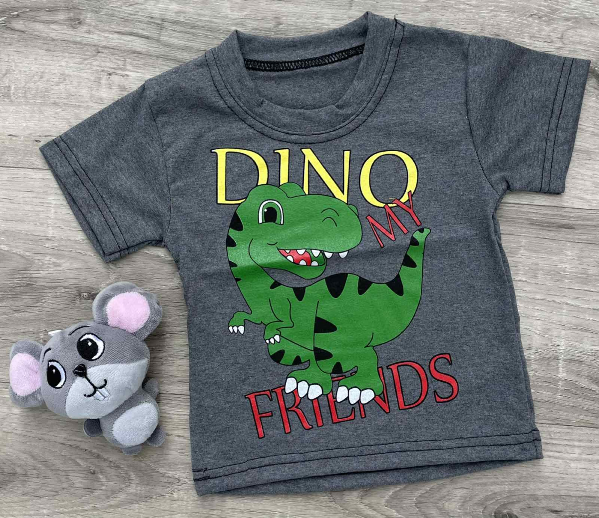 Футболка "Dino" темно-серая, мальчик 1-2-3-4-5 лет оптом уп. - 5 шт.