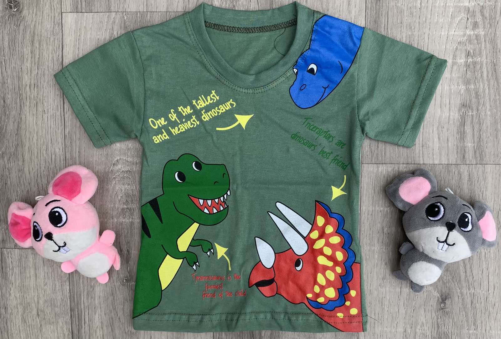 Футболка "Динозавры" хаки, мальчик 1-2-3-4-5 лет оптом уп. - 5 шт.