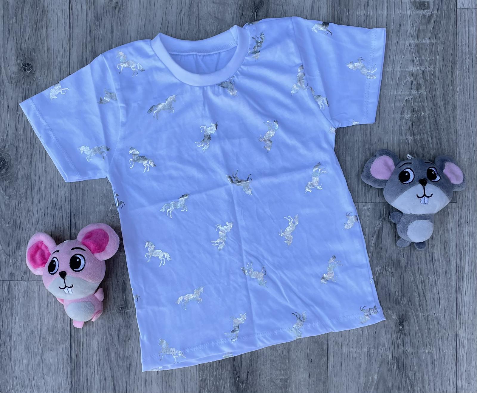 Футболка "Единорожка" белая, девочка 4-5-6-7-8 лет оптом уп. - 5 шт.