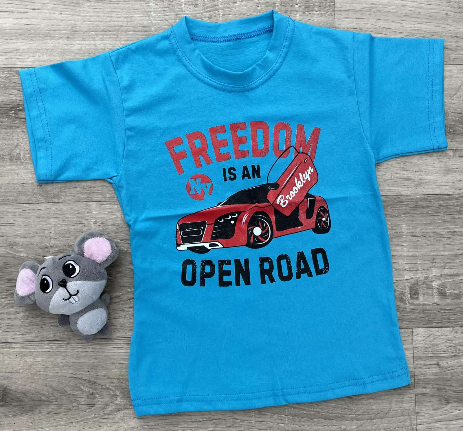 Футболка "Freedom" голубая, мальчик 6-7-8-9 лет оптом уп. - 4 шт.