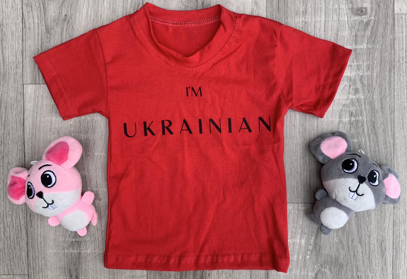 Футболка "I'm Ukrainian" красная, унисекс 1-2-3-4-5 лет оптом уп. - 5 шт.