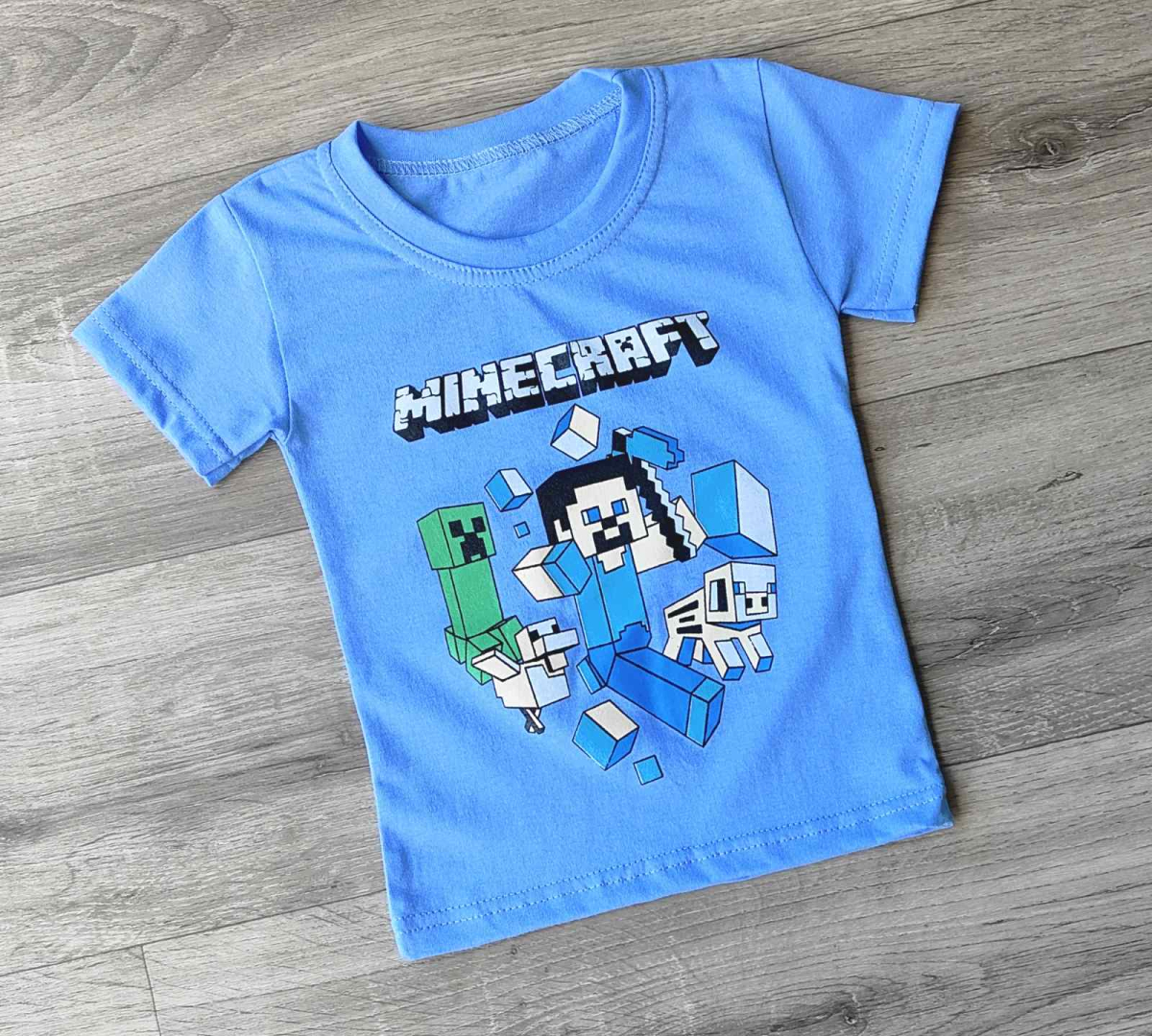 Футболка "Майнкрафт" голубой, мальчик 1,5-3-5-7-9  лет, фото