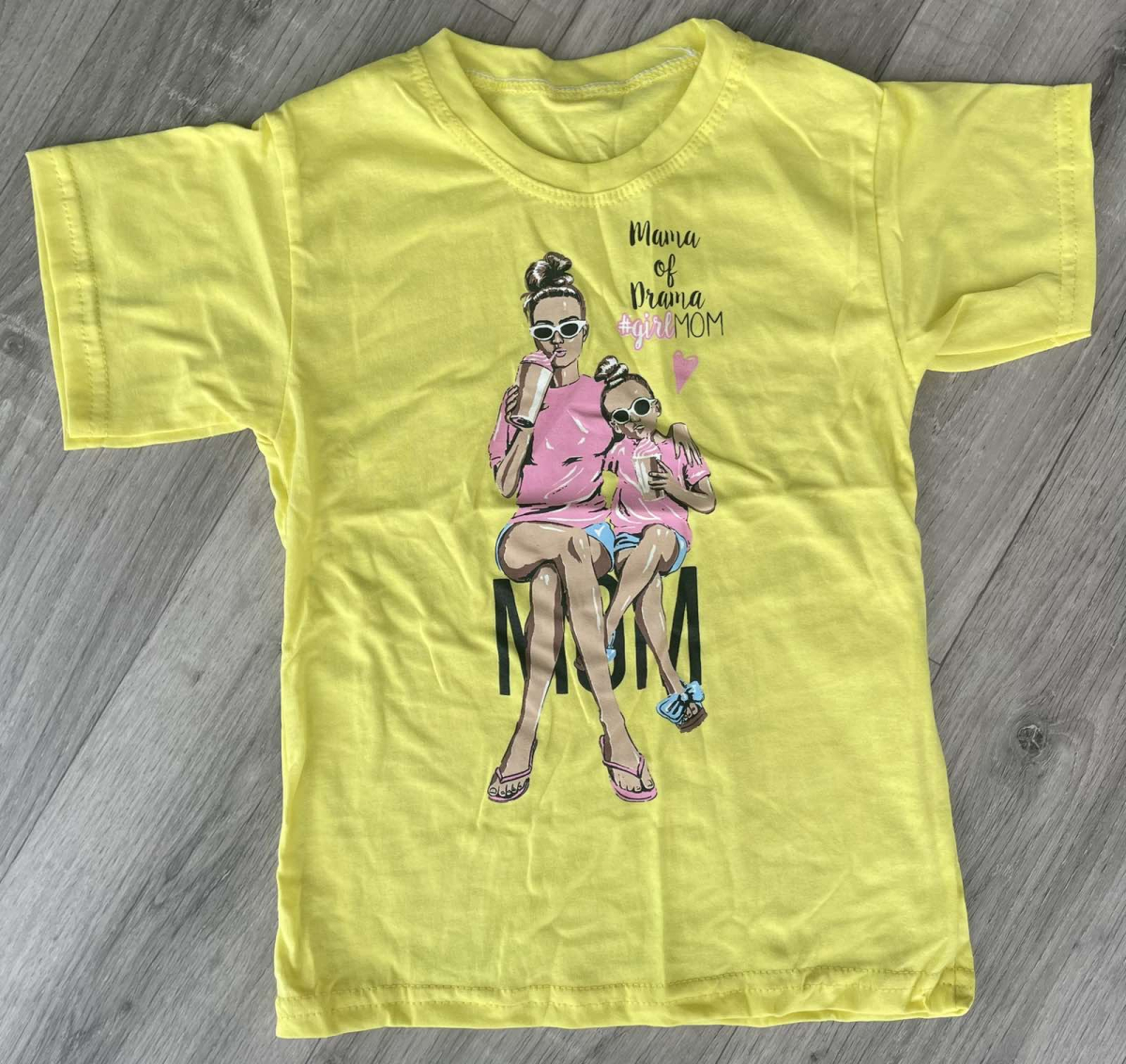 Футболка «Mom» лимонный, девочка 5-6-7-8 лет оптом уп. - 4 шт.