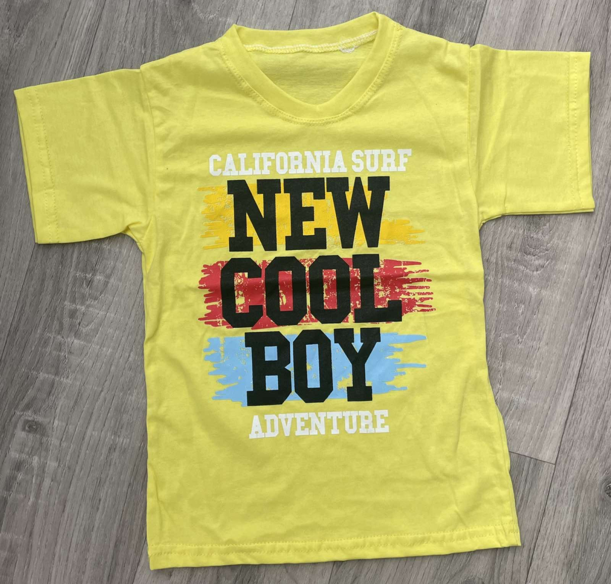 Футболка «New Cool Boy» жёлтый, мальчик 5-6-7-8 лет оптом уп. - 4 шт.