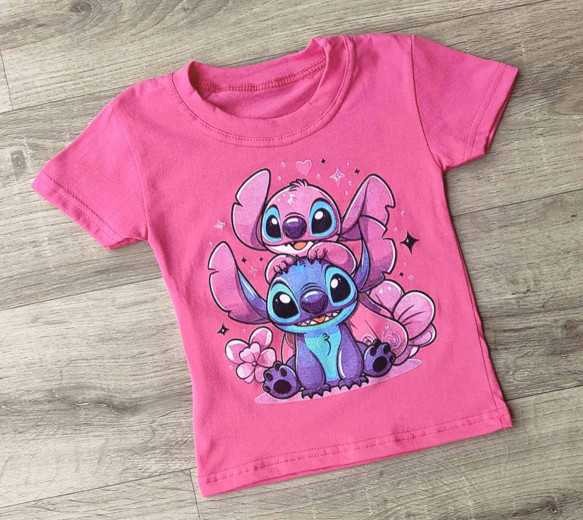 Футболка "Стич" малиновый, девочка 1,5-3-5-7-9 лет оптом уп. - 5 шт.