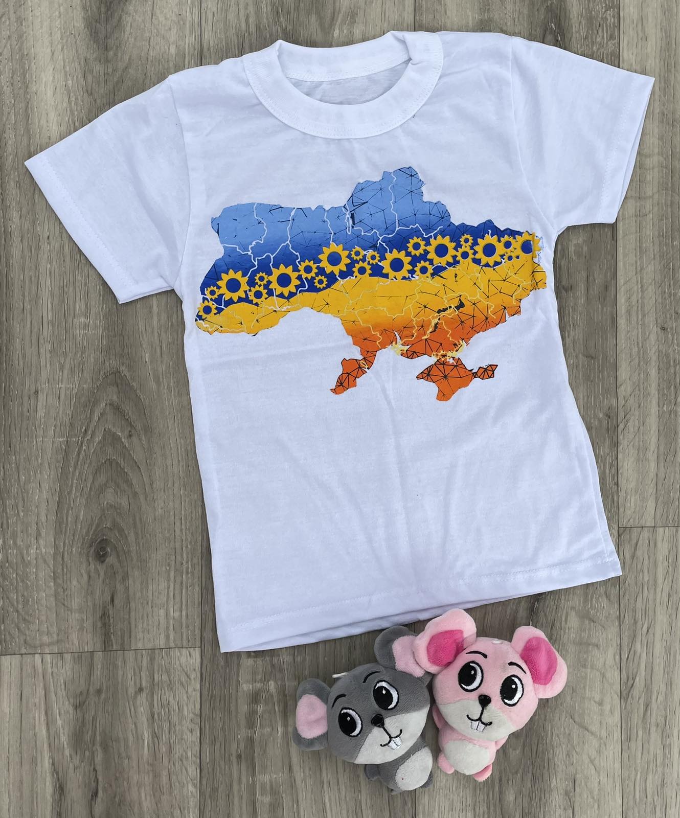 Футболка "Украина" белая, унисекс 5-6-7-8-9-10-11 лет оптом уп. - 7 шт.