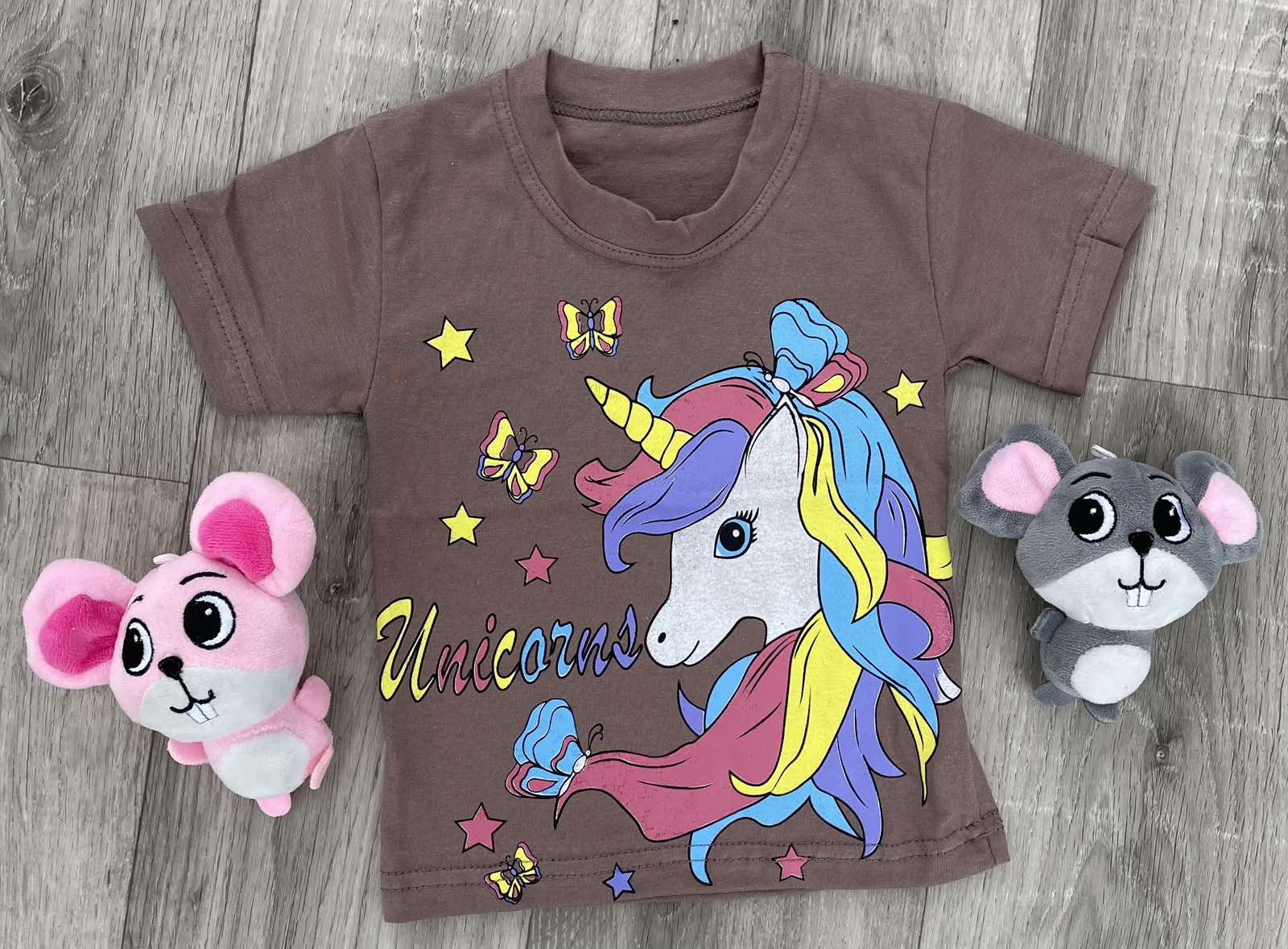 Футболка "Unicorn" коричневая, девочка 1-2-3-4-5 лет оптом уп. - 5 шт.