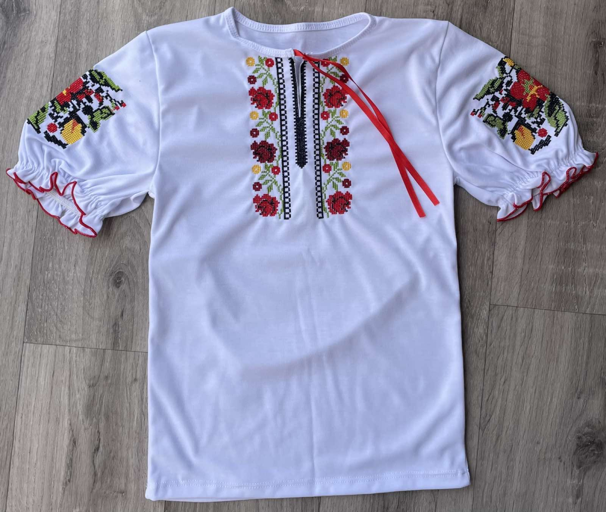 Футболка «Вышиванка» белый, девочка 7-8-9 лет оптом уп. - 3 шт.