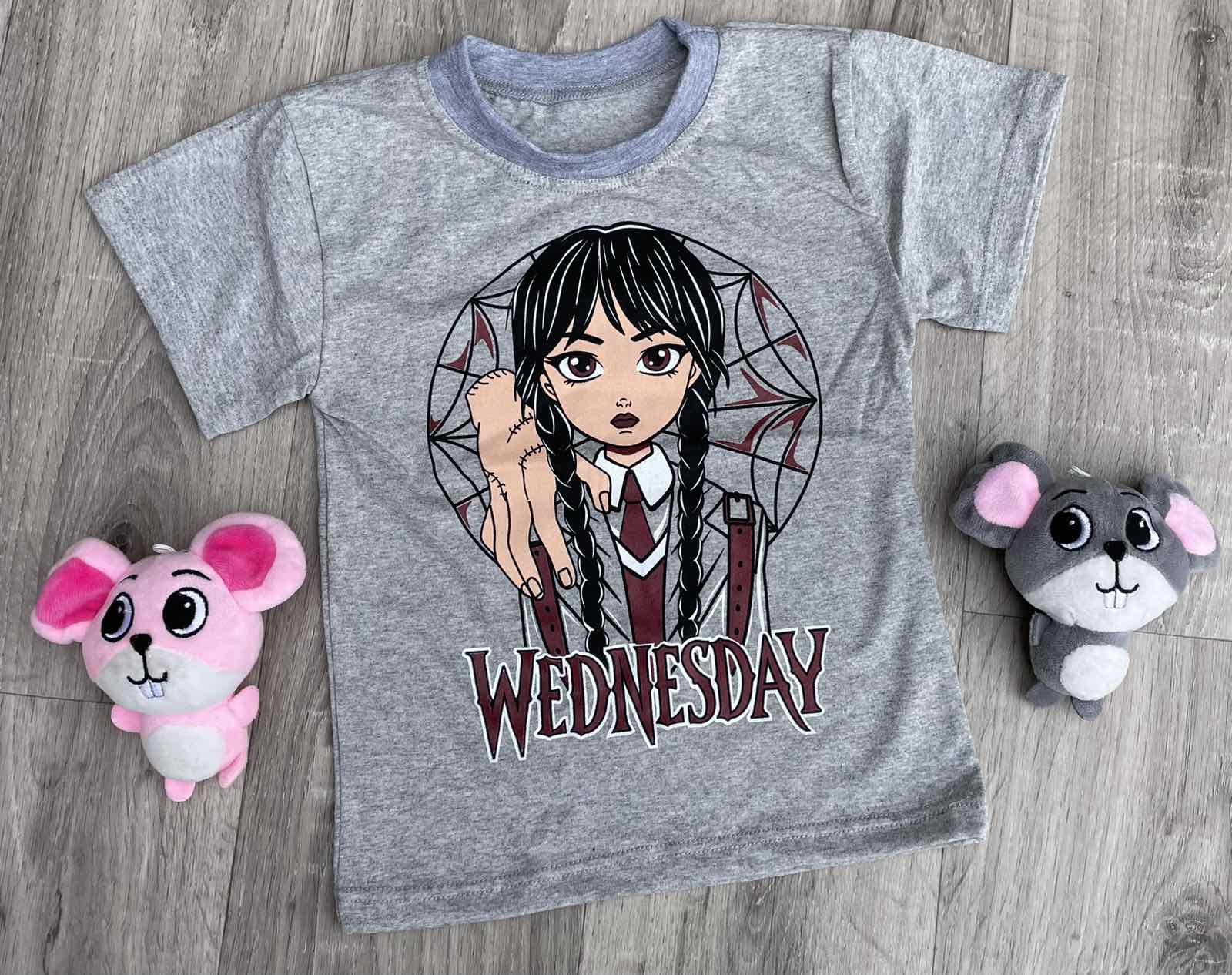 Футболка "Wednesday" сіра, дівчинка 2-3-4-5 років оптом уп. - 4 шт.