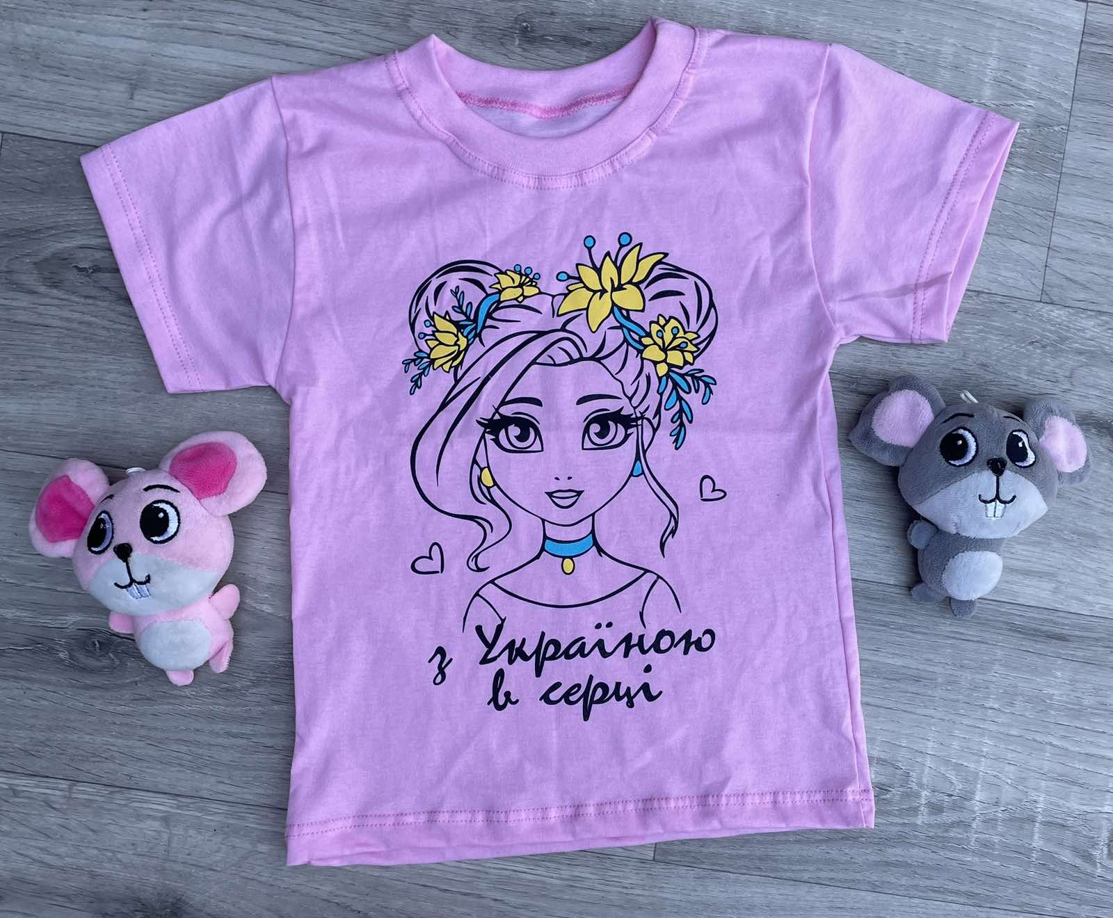 Футболка "З Україною у серці" розовая, девочка 3-4-5-6-7-8 лет, фото