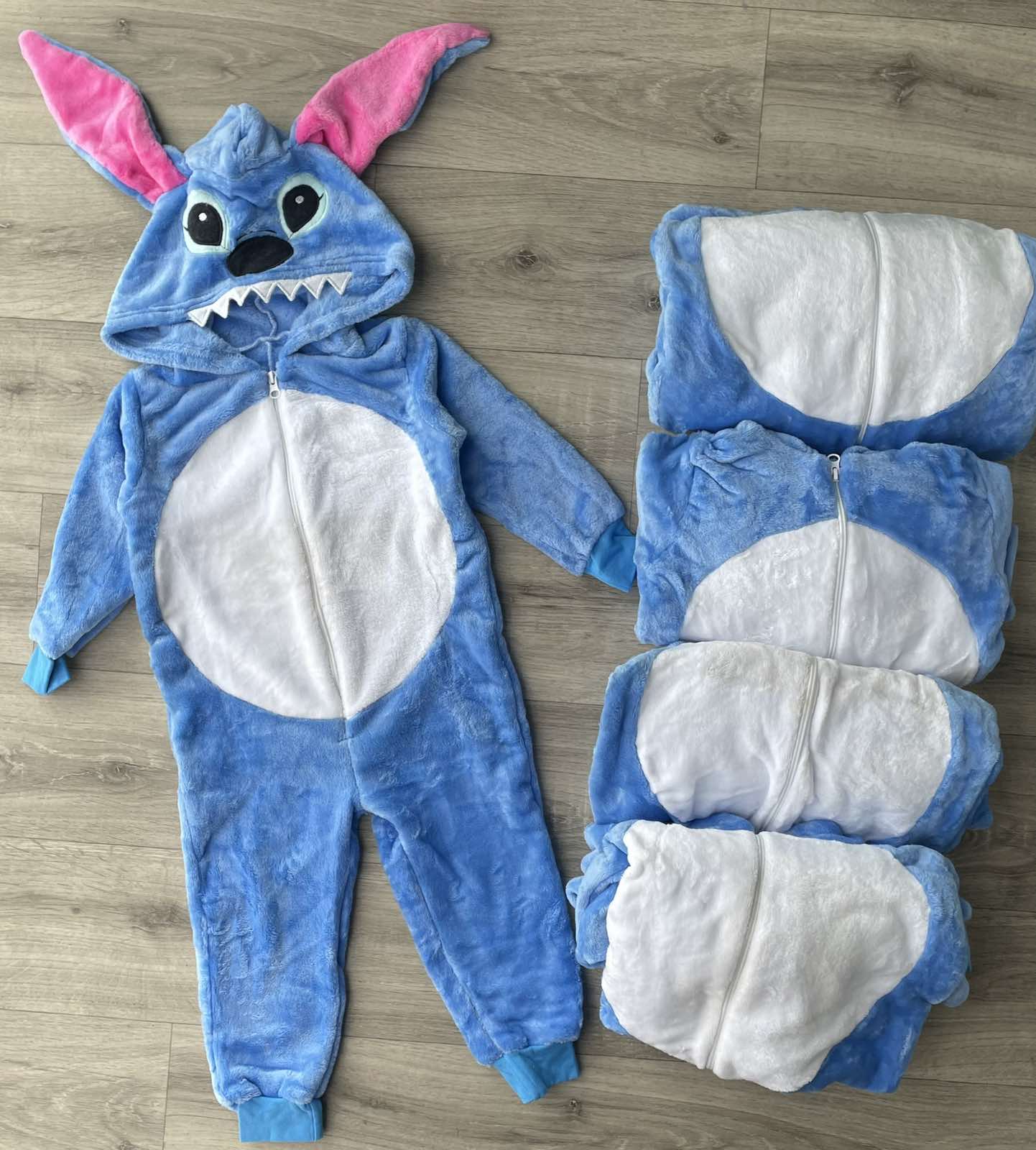 Кигуруми "Stitch" синий, унисекс 1-3-5-7-9 лет оптом уп. - 5 шт.