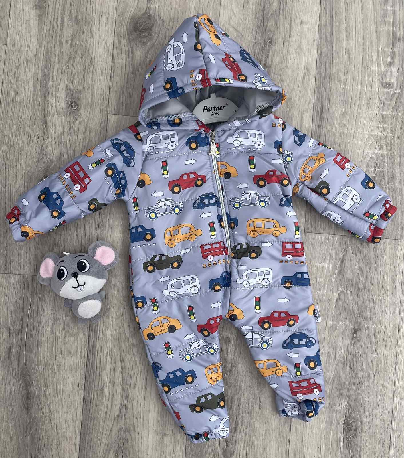 Комбинезон Partner "Cars" серый, мальчик 3-6-9-12 месяцев оптом уп. - 4 шт.
