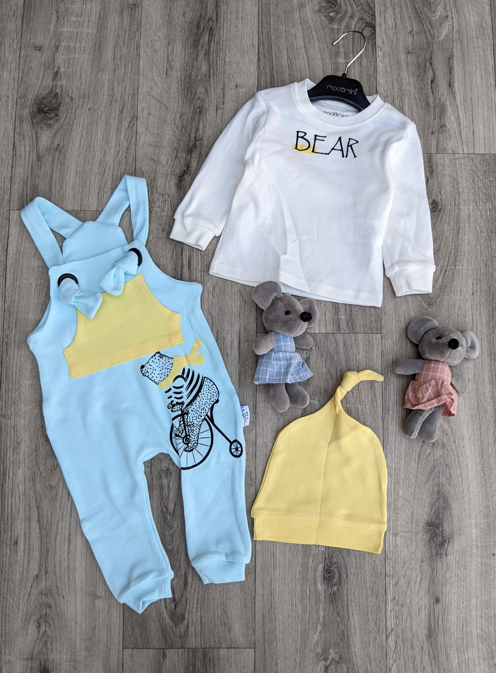 Комбинезон ModaMini "Bear" бирюзовый, мальчик 6-9-12-18 месяцев оптом уп. - 4 шт.