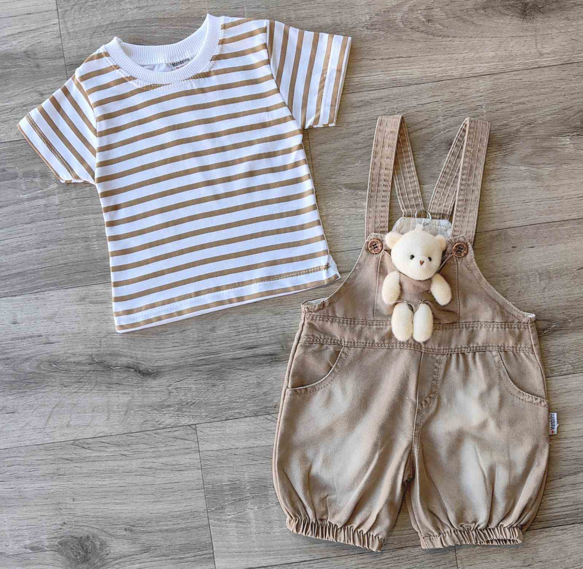 Комбинезон/Песочник Mandalino «Мишка» бежевый, унисекс 12-18-24 месяцев оптом уп. - 3 шт.