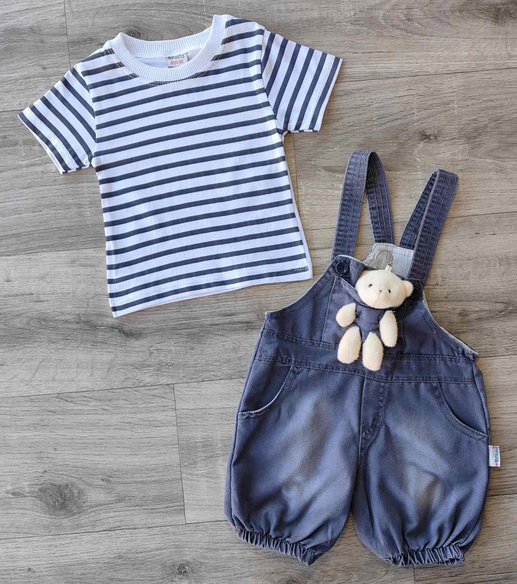 Комбинезон/Песочник Mandalino «Мишка» синий(темный), мальчик 12-18-24 месяцев оптом уп. - 3 шт.