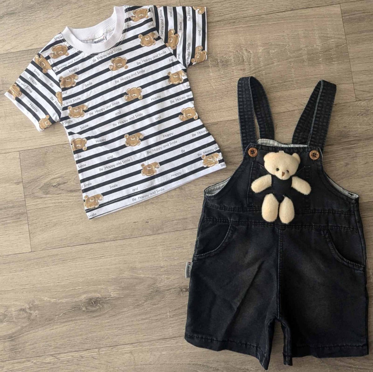 Комбинезон/Песочник «Мишка» черный, мальчик 12-18-24 месяцев оптом уп. - 3 шт.