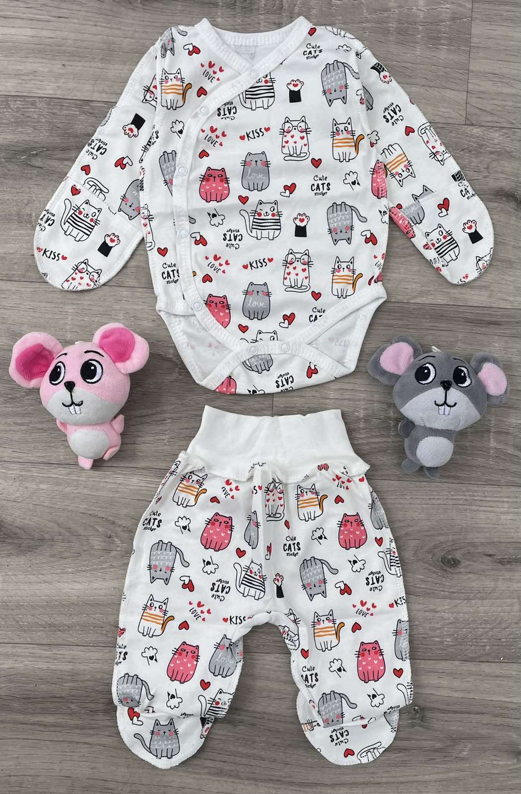 Комплект "Cats" молочный, девочка 0-3 месяцев оптом уп. - 2 шт.