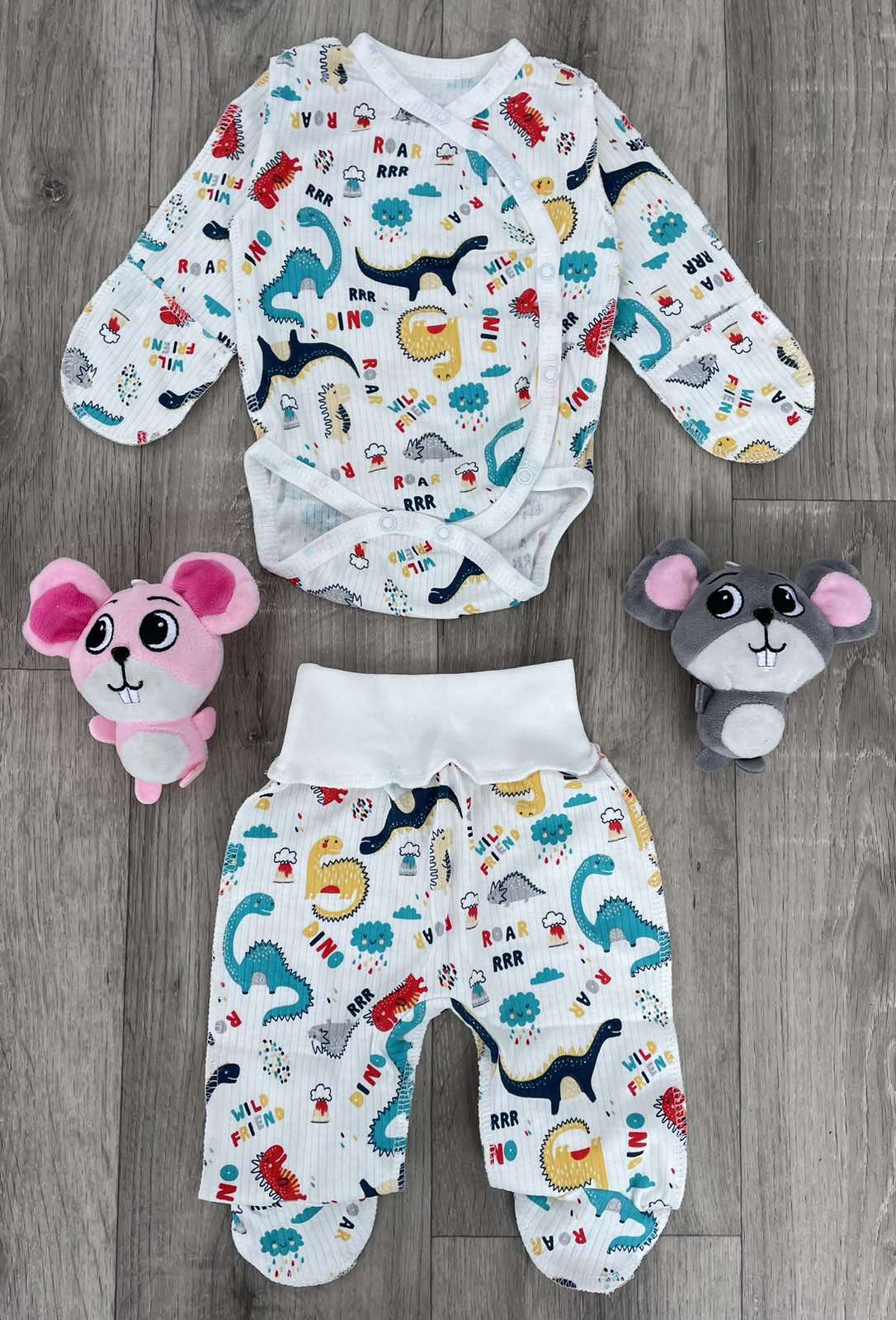 Комплект "Динозавры" молочный, унисекс 0-3 месяцев оптом уп. - 2 шт.