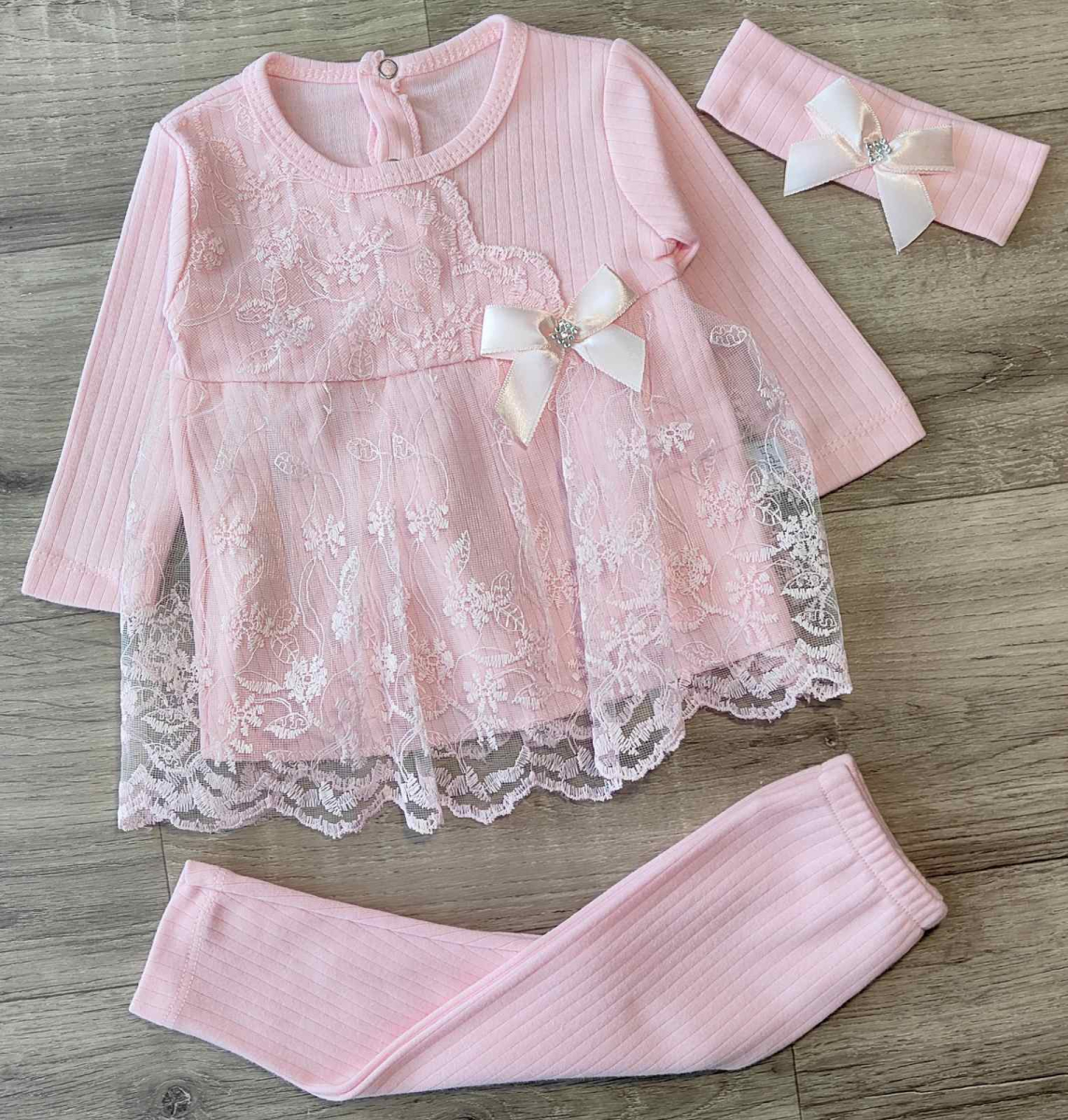 Комплект Findik "Бантик", рожевий, дівчинка 3-6-9 місяців оптом уп. - 3 шт.